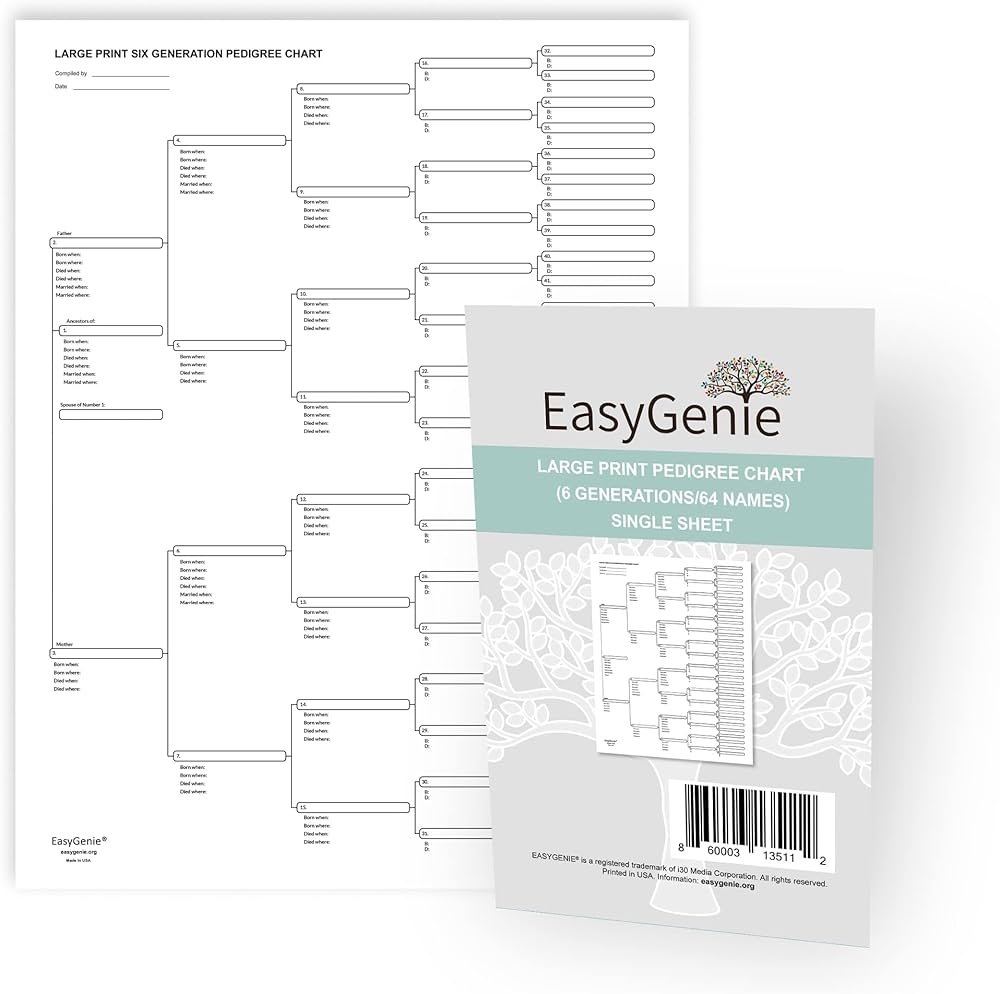 Amazon LARGE PRINT Blank Pedigree Chart 6 Generations 64 Names For Ancestry Single Sheet Archival Quality Genealogy Forms Arts Crafts U0026 Sewing