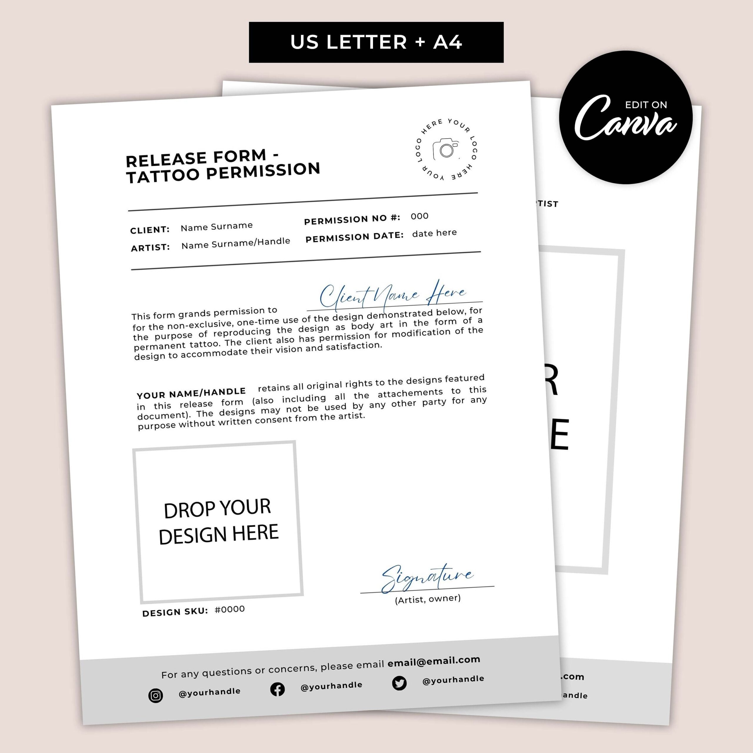 Tattoo Permission Release Form Easy To Edit Canva Templates Permission To Use Artwork For Tattoo Form Document Artwork Indulgence Form Etsy