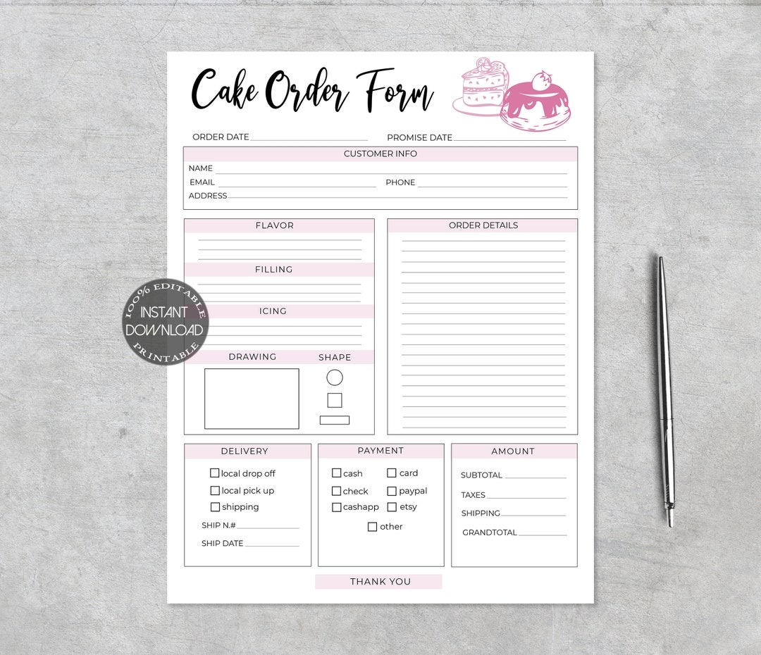Cake Order Form Editable Order Forms Template Printable Bakery Custom Order Form Small Business Forms Instant Download Dtp 004 Etsy Norway