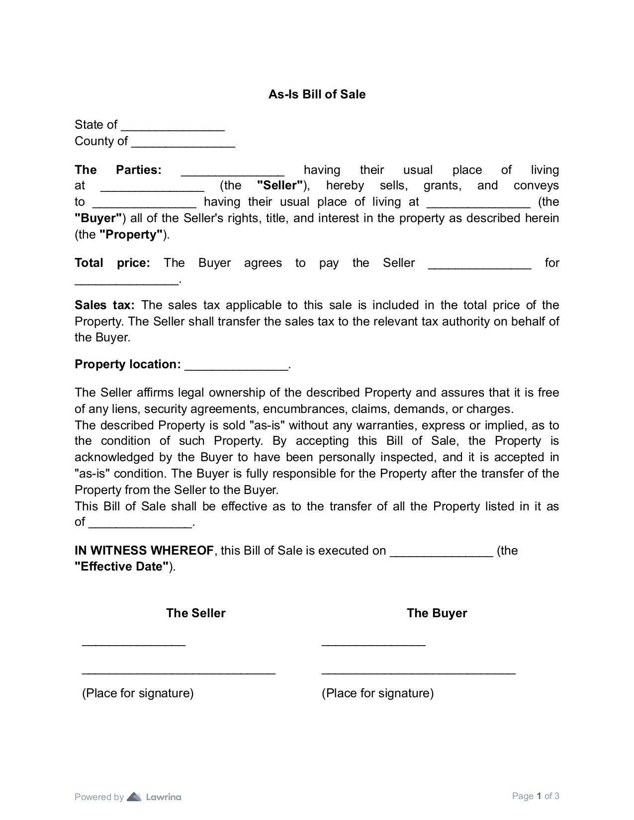 As Is Bill Of Sale Form Create U0026 Download PDF Lawrina