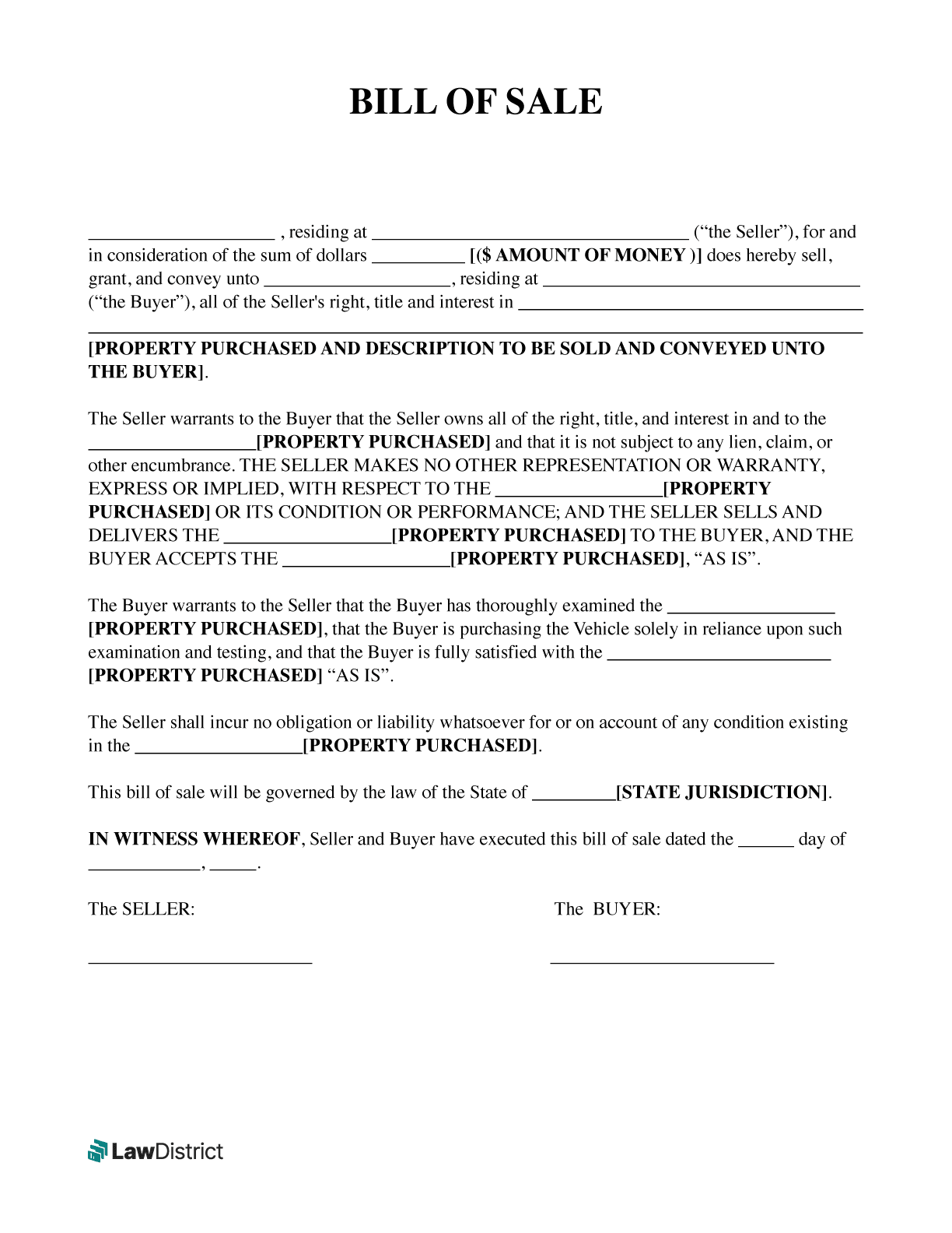 Free As Is No Warranty Bill Of Sale Template PDF Word EForms