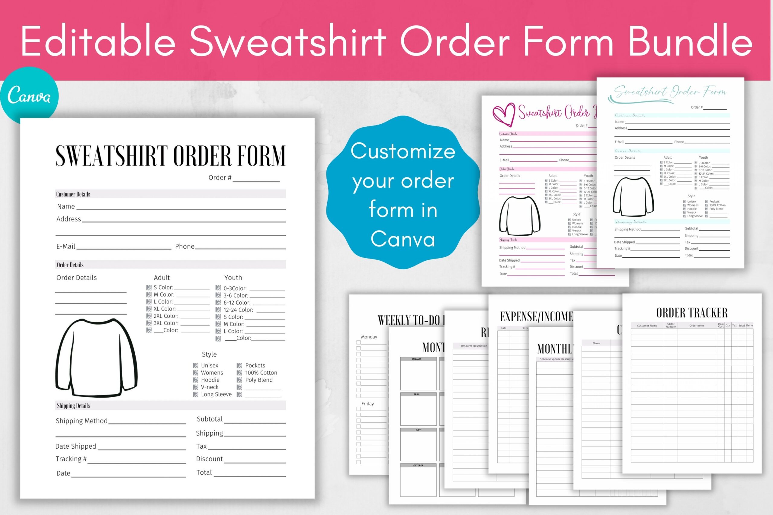 Hoodie Order Form Template I Editable Canva Invoice Template I T shirt Small Business Form I Custom Order Form Printable I Crafters Forms Etsy