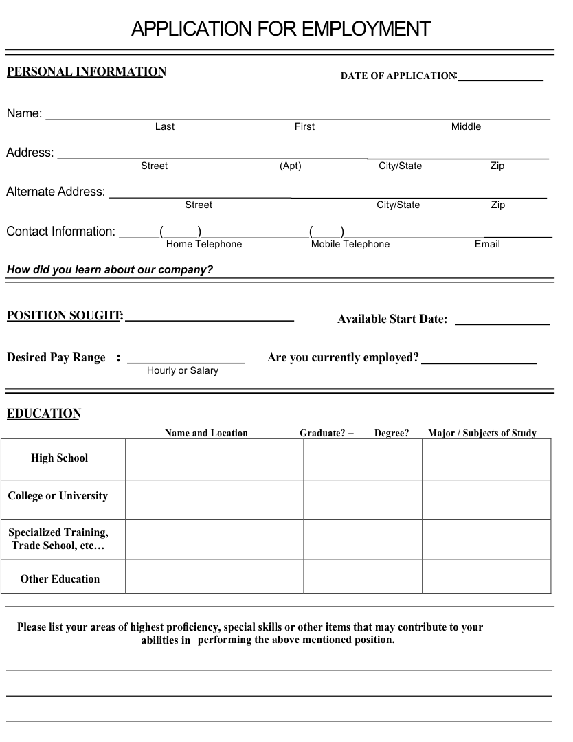 50 Free Employment Job Application Form Templates Printable TemplateLab