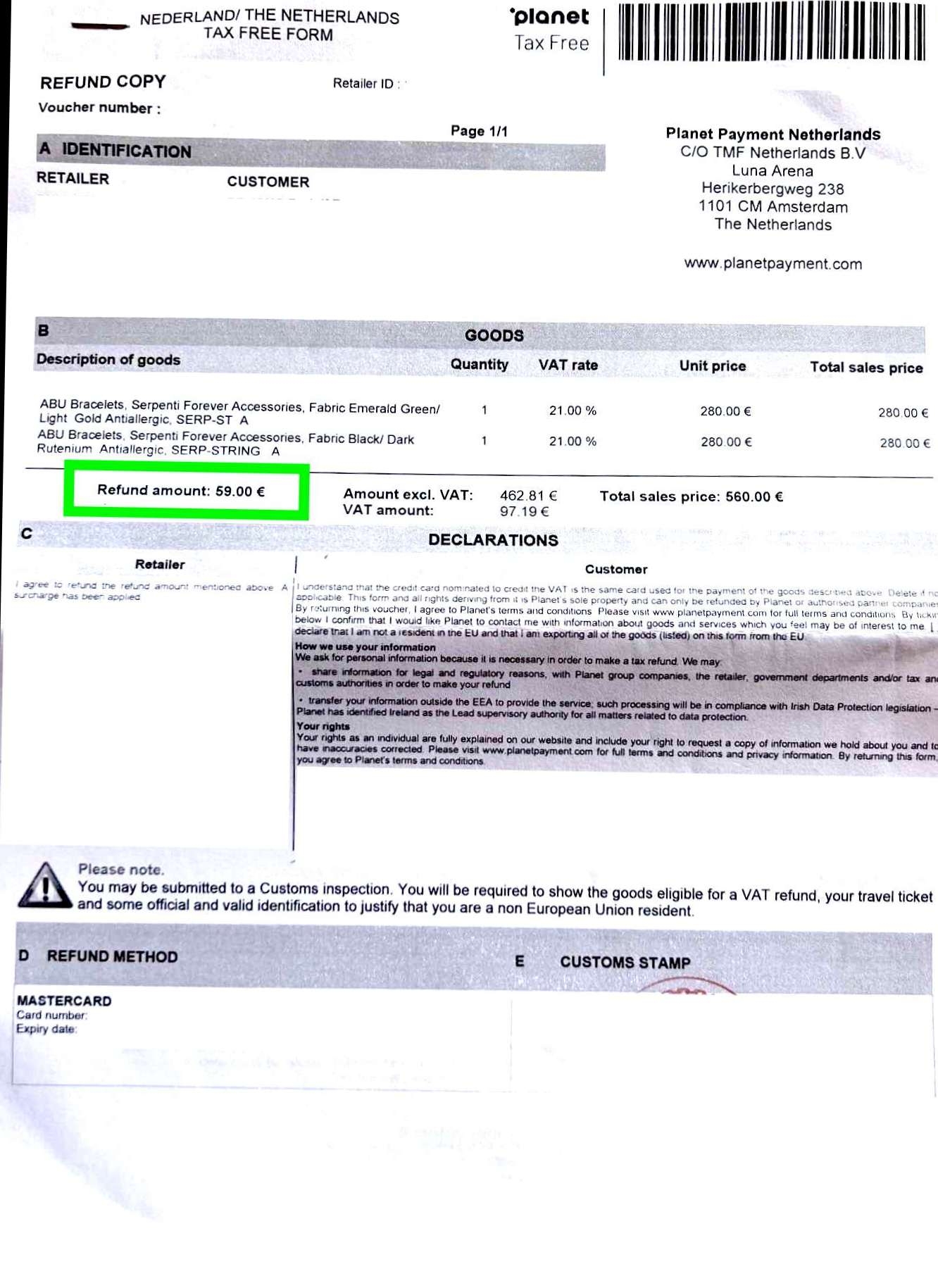 Simply fill out the form with your personal details, purchase information, and VAT details. Make sure to get it validated by the retailer before leaving the country. Once you arrive back home, submit the form for processing and enjoy your VAT refund.