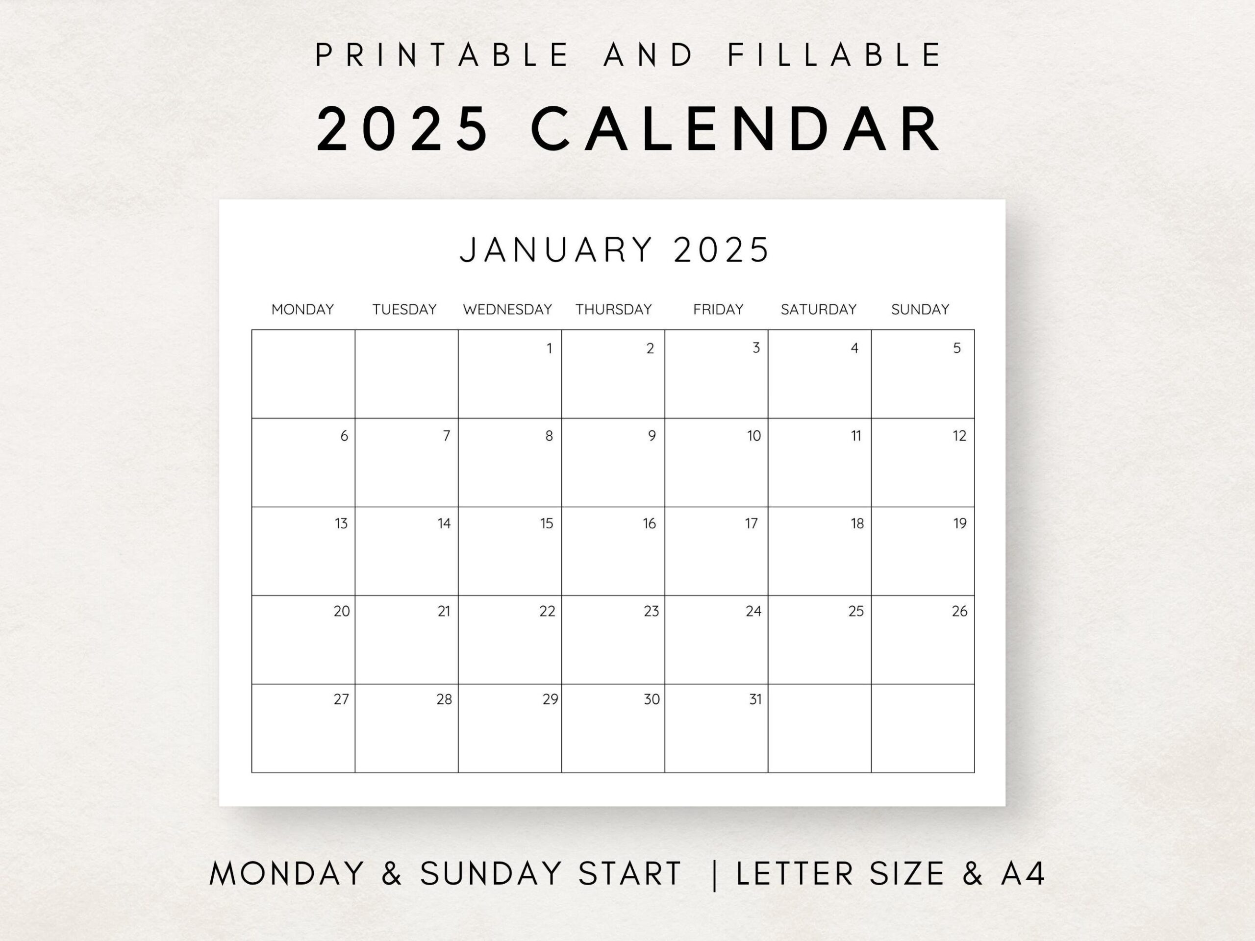 2025 Calendar Printable Monthly Calendar 2025 Fillable Calendar