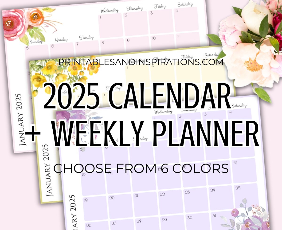 Free Printable 2025 Monthly Calendar Weekly Planner Printables