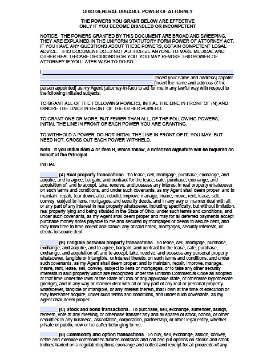 Ohio Durable Financial Power Of Attorney Form Power Of Attorney Power Of Attorney