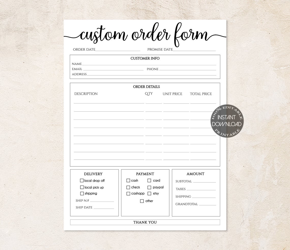 Free Custom Order Forms Printable: Choose from a Variety of Designs