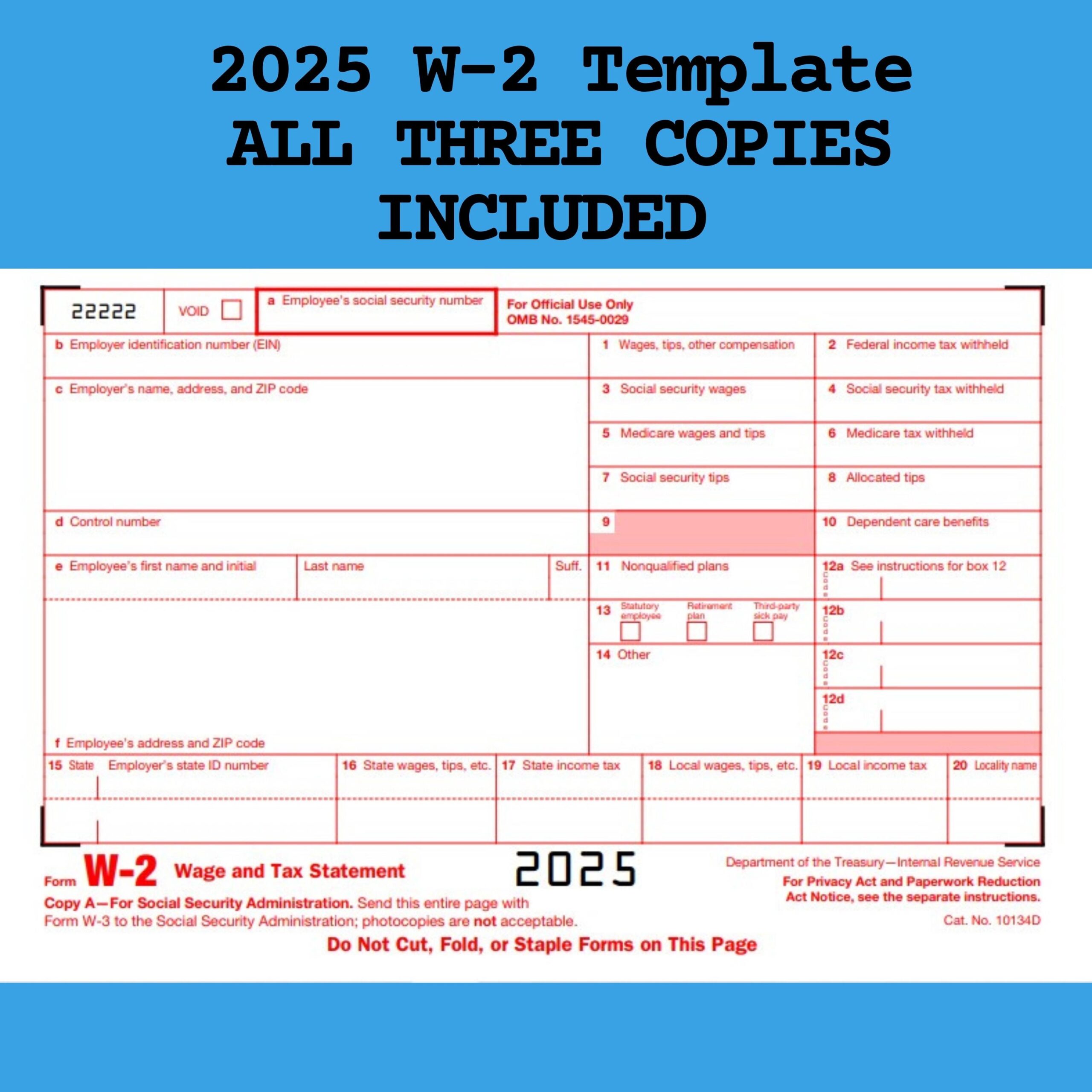 W 2 Form IRS 2025 Fillable PDF Generate Quickly Digital Download Prints Clearly Etsy