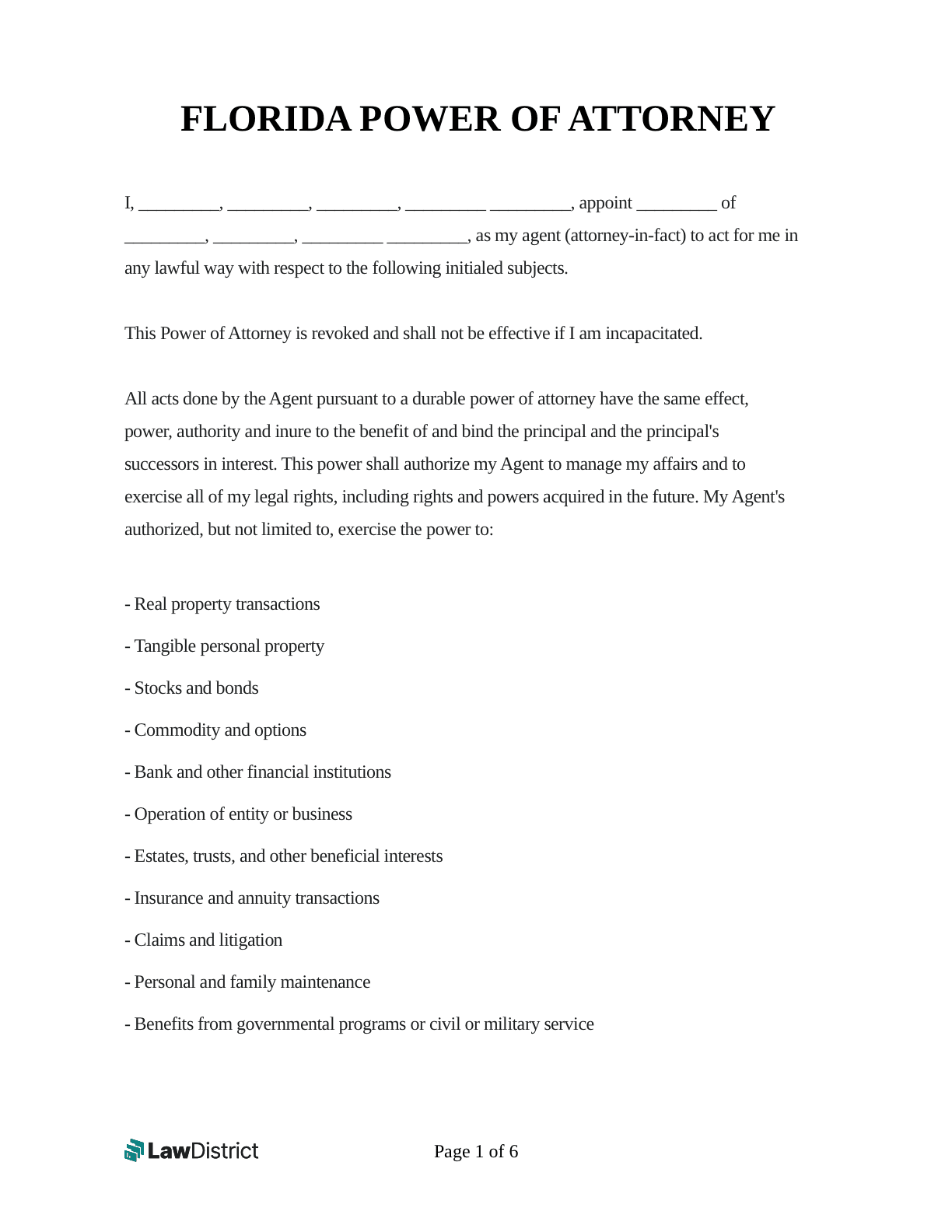 Florida Power Of Attorney Templates Free Word PDF U0026 ODT
