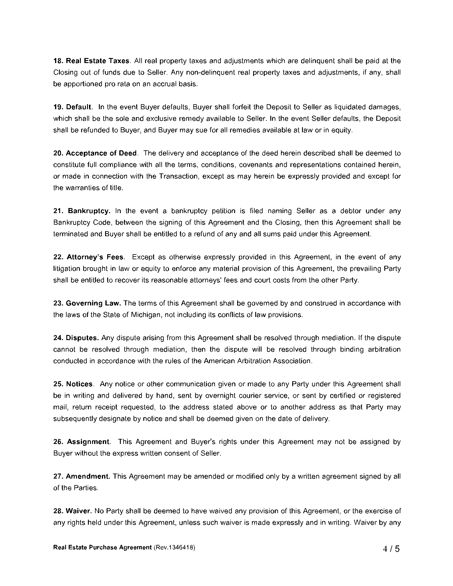Free Michigan Real Estate Purchase Agreement Template PDF Word