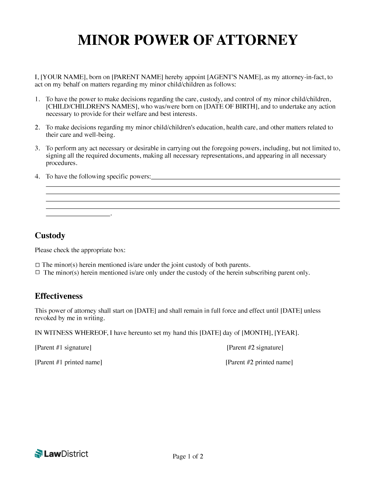 Free Minor Power Of Attorney PDF U0026 Word Template LawDistrict