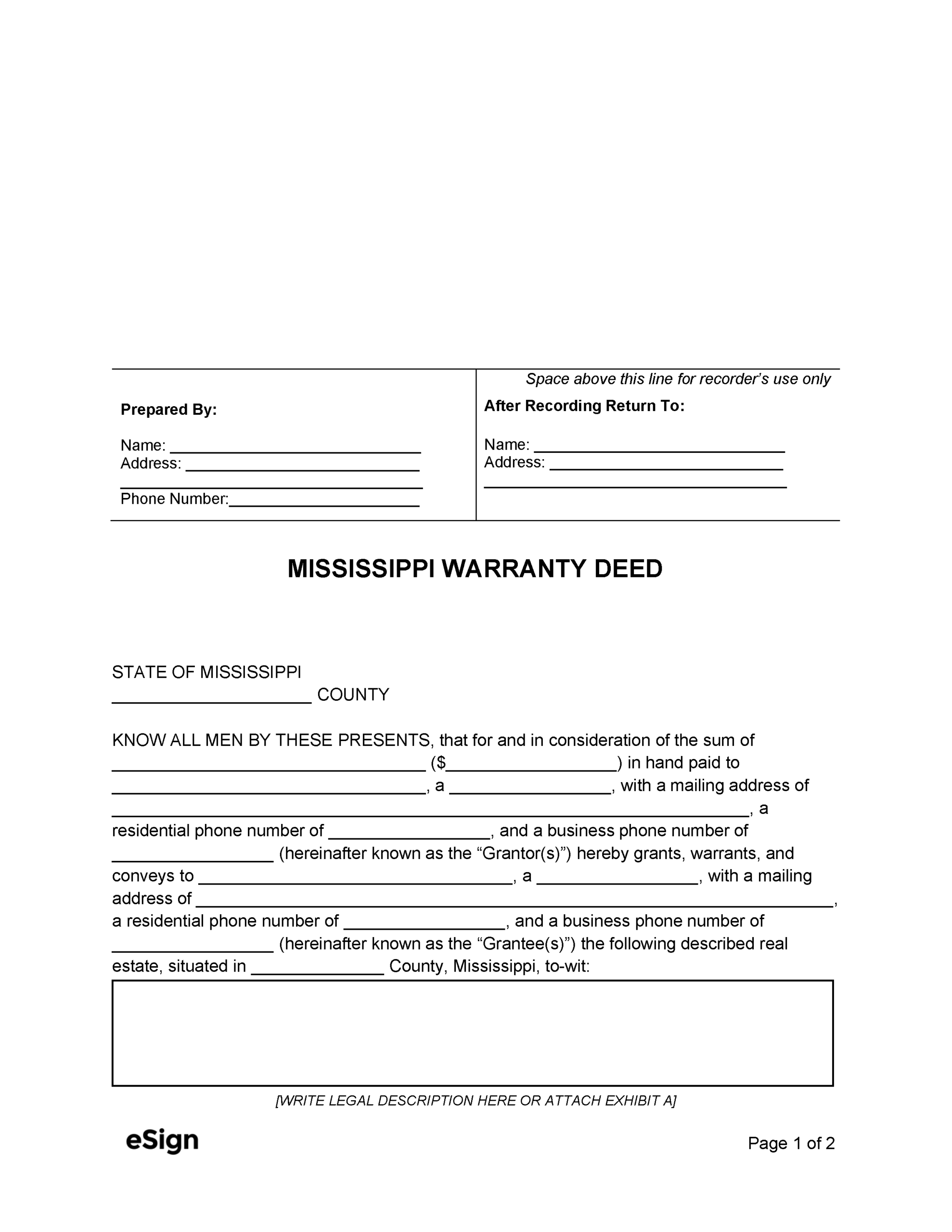 Free Mississippi Deed Forms PDF Word