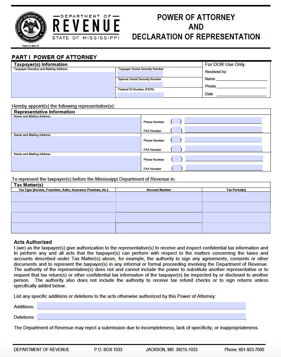 Free Mississippi Power Of Attorney Forms PDF Templates