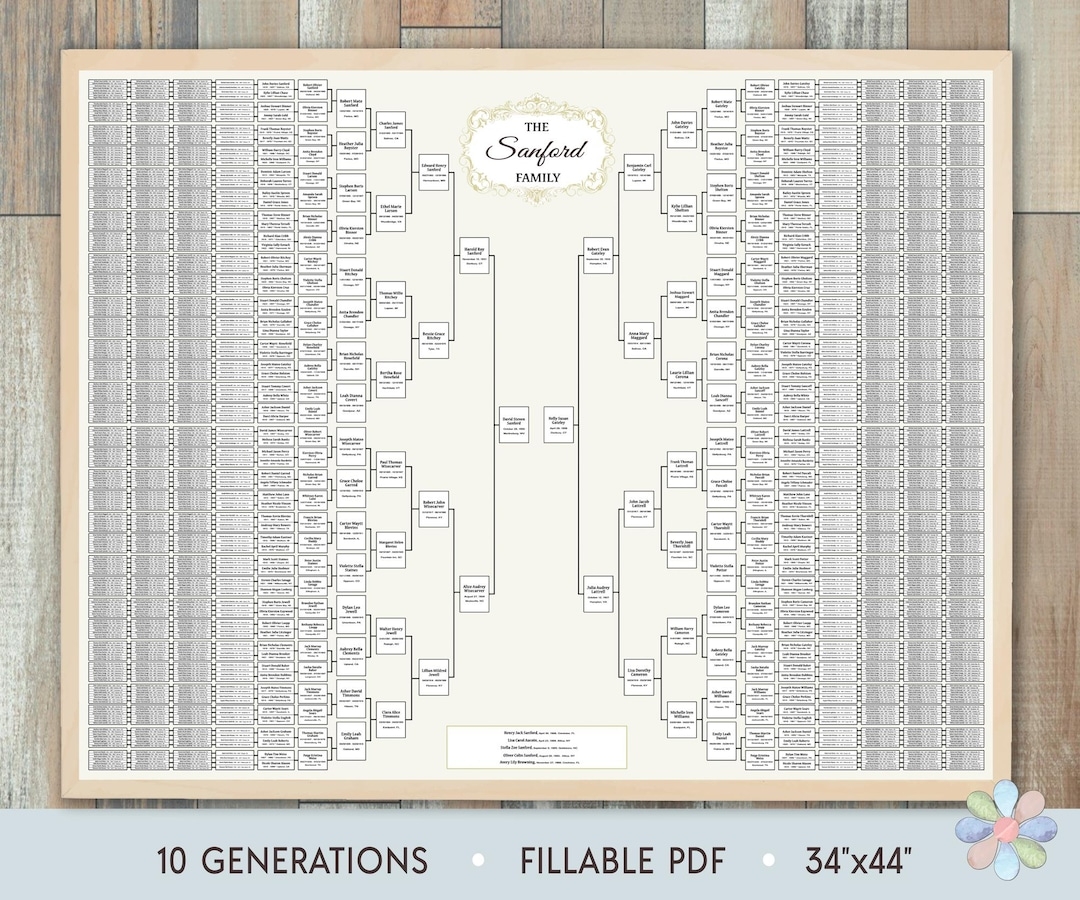 Family Tree Chart 10 Generations Printable And Editable Family Tree Template Digital Pedigree Chart Ancestral Genealogy Template Etsy
