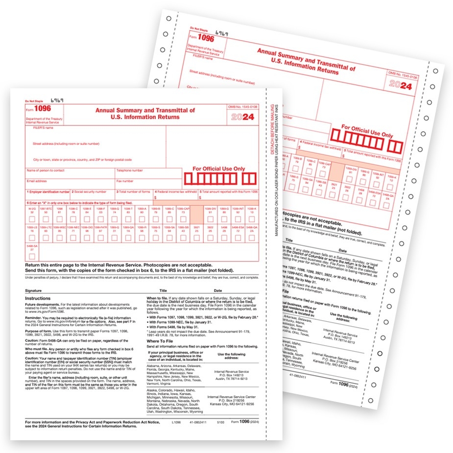 Amazon NextDayLabels 1096 Transmittal 2024 Tax Forms For Laser Or Inkjet Printers Quickbooks And Other Accounting Software Compatible Pack