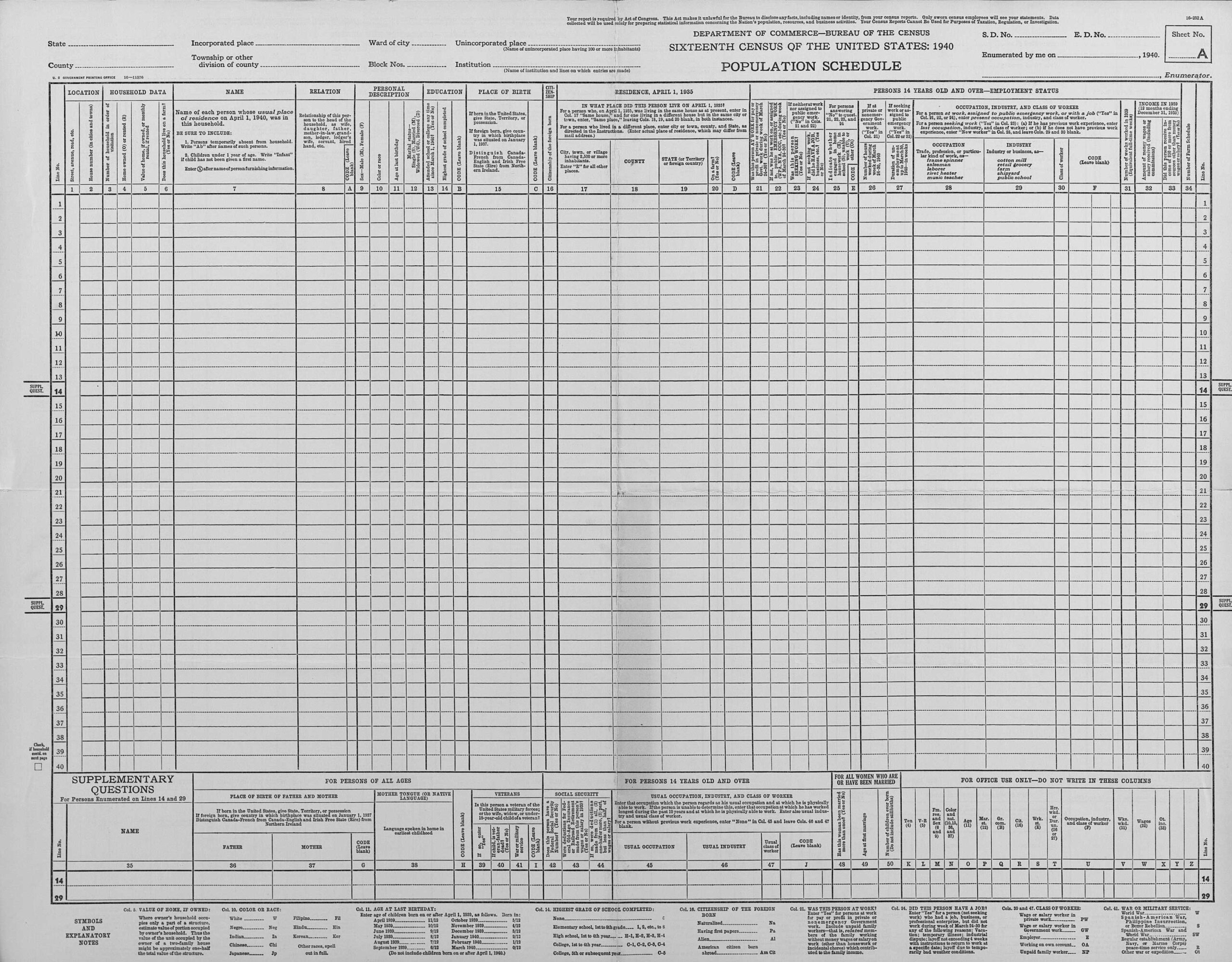 The 1940 Census is a valuable tool for tracing your ancestors and understanding their lives. By filling out this form, you can gather information about your family members, their occupations, and where they lived.
