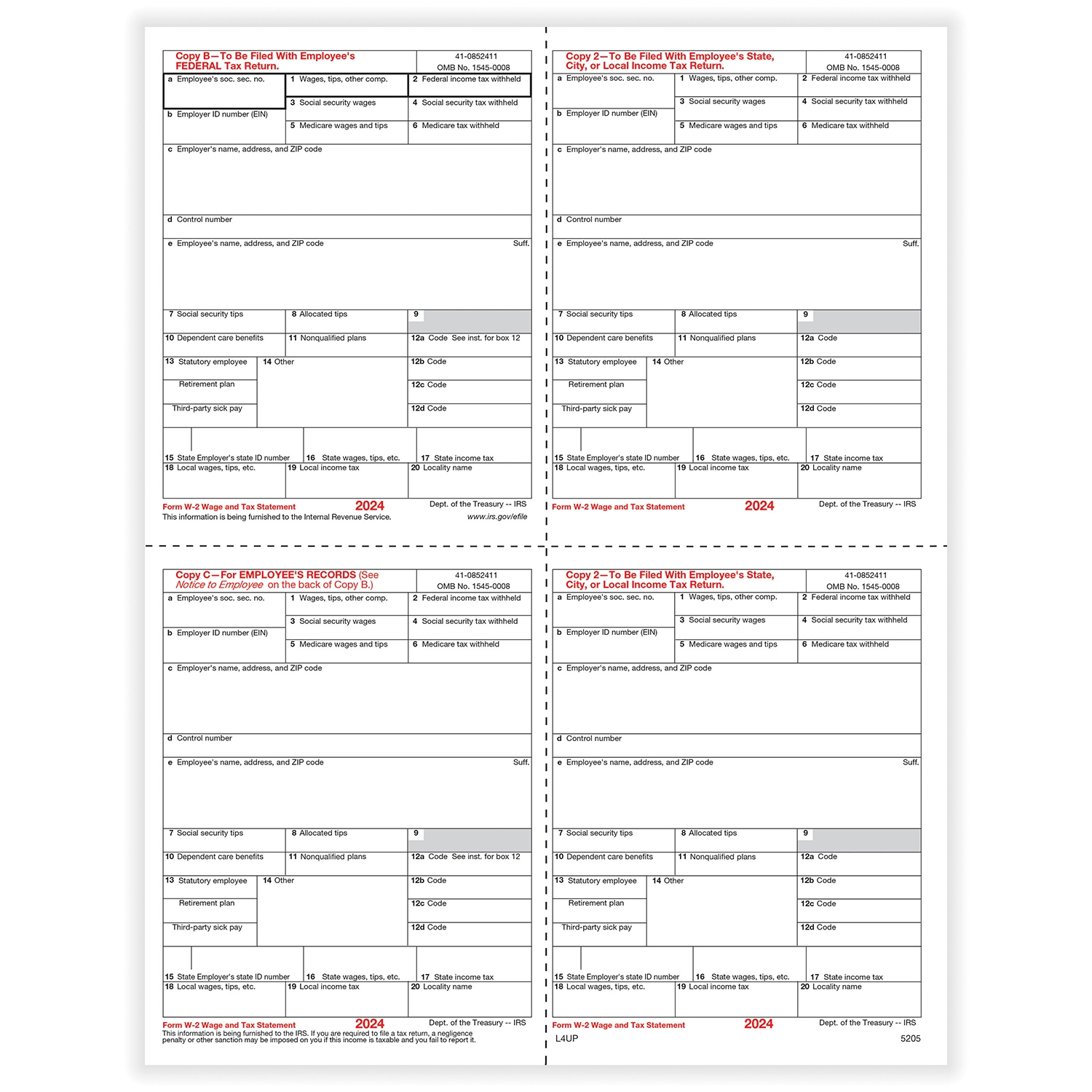 Wage Tax Statement W 2 Laser 4 Up Tax Form Formstax