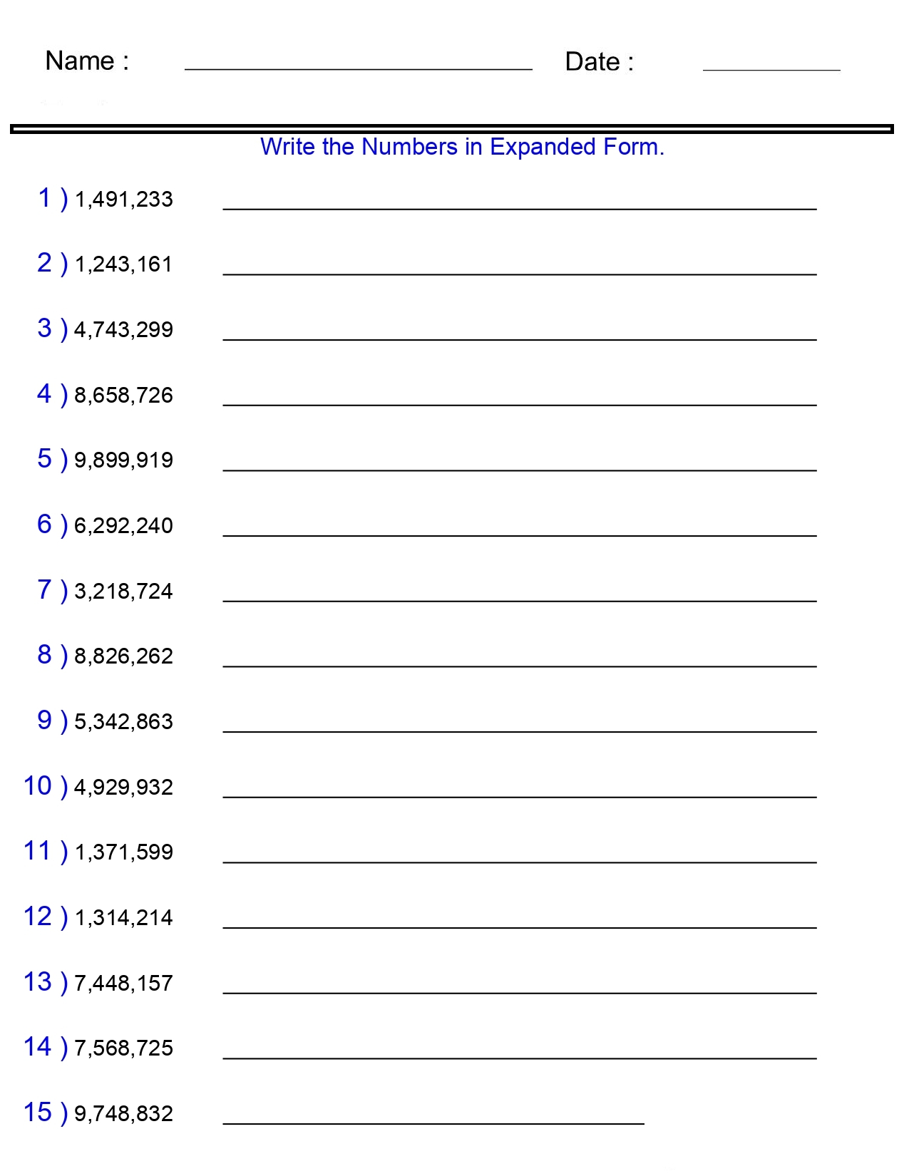 Each worksheet includes a variety of numbers for your child to work with, allowing them to practice converting numbers from standard form to expanded form. These worksheets are a great resource for parents and teachers alike, providing an easy way to supplement classroom learning.