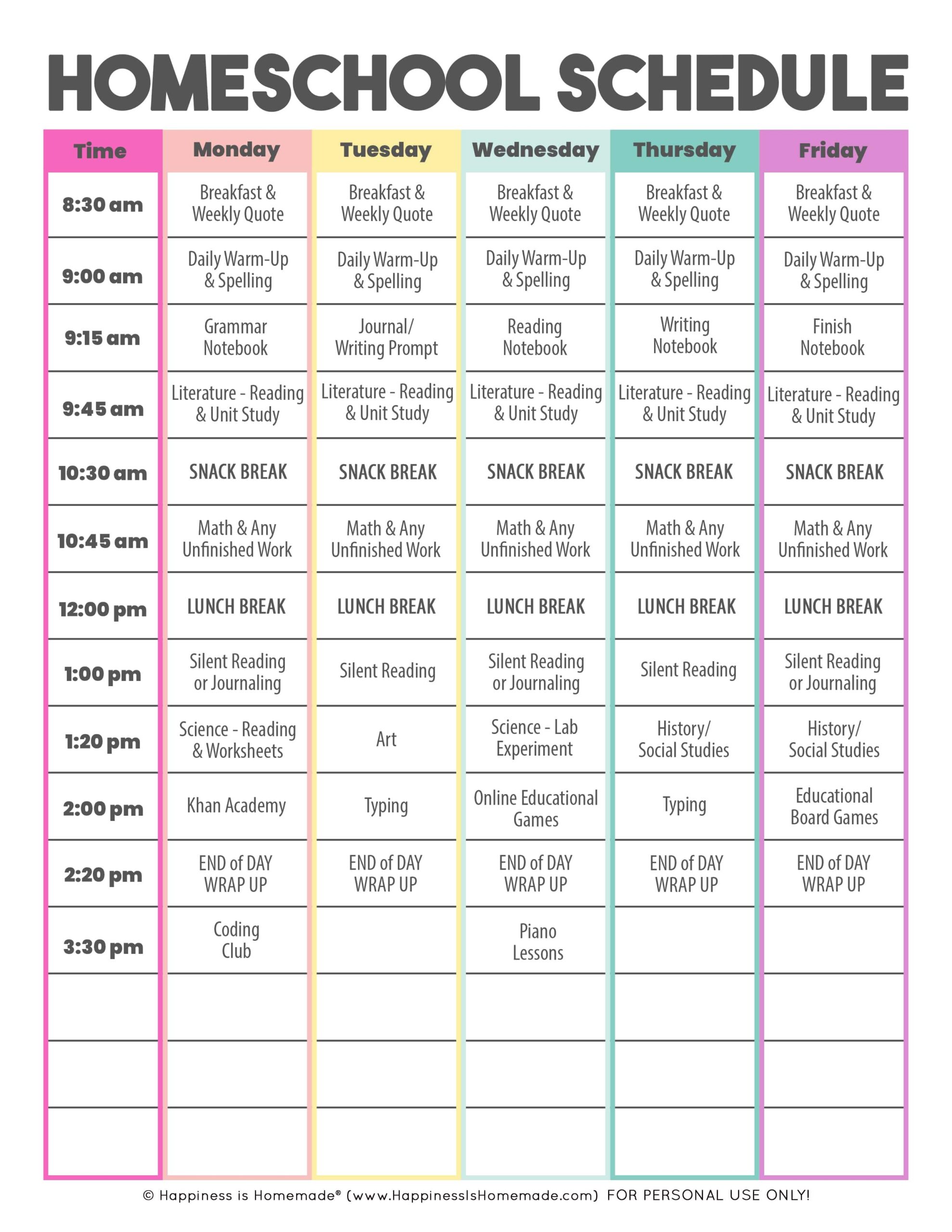Homeschool Schedule Template Free Printable Happiness Is Homemade