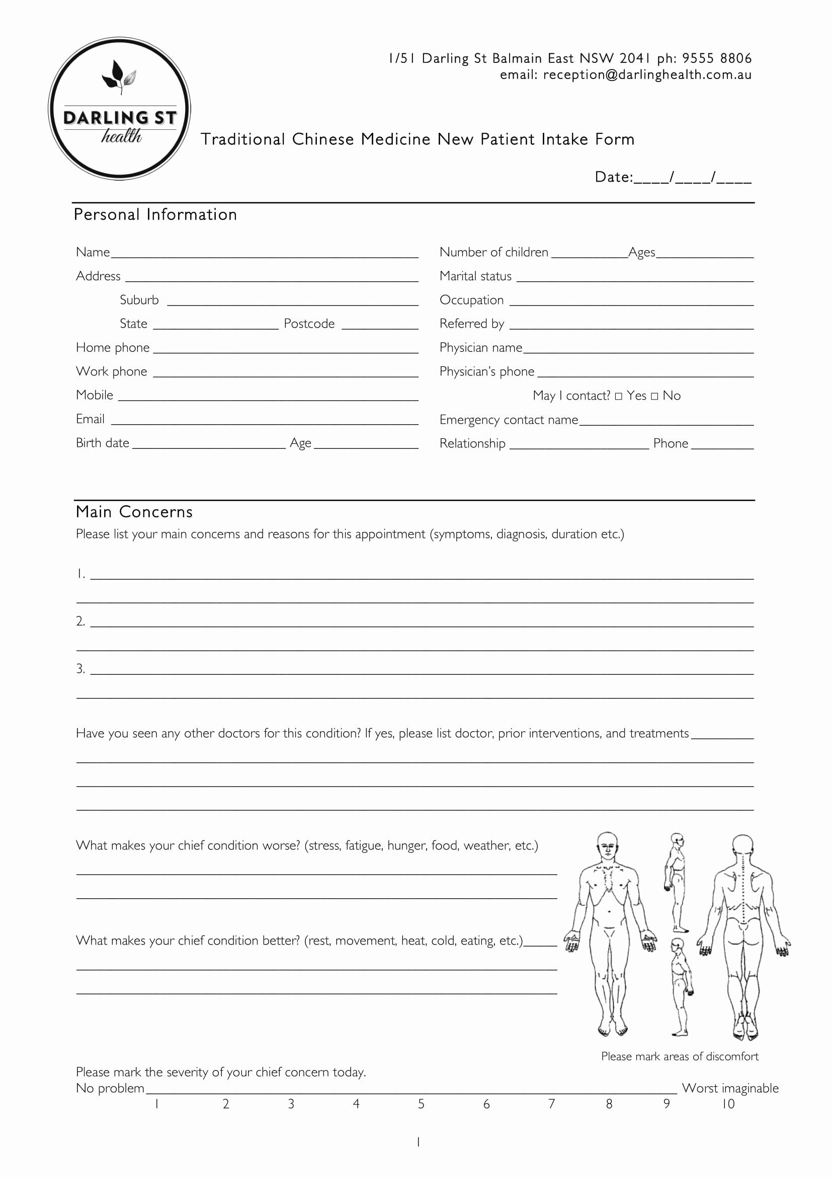 Free Printable Acupuncture Intake Form