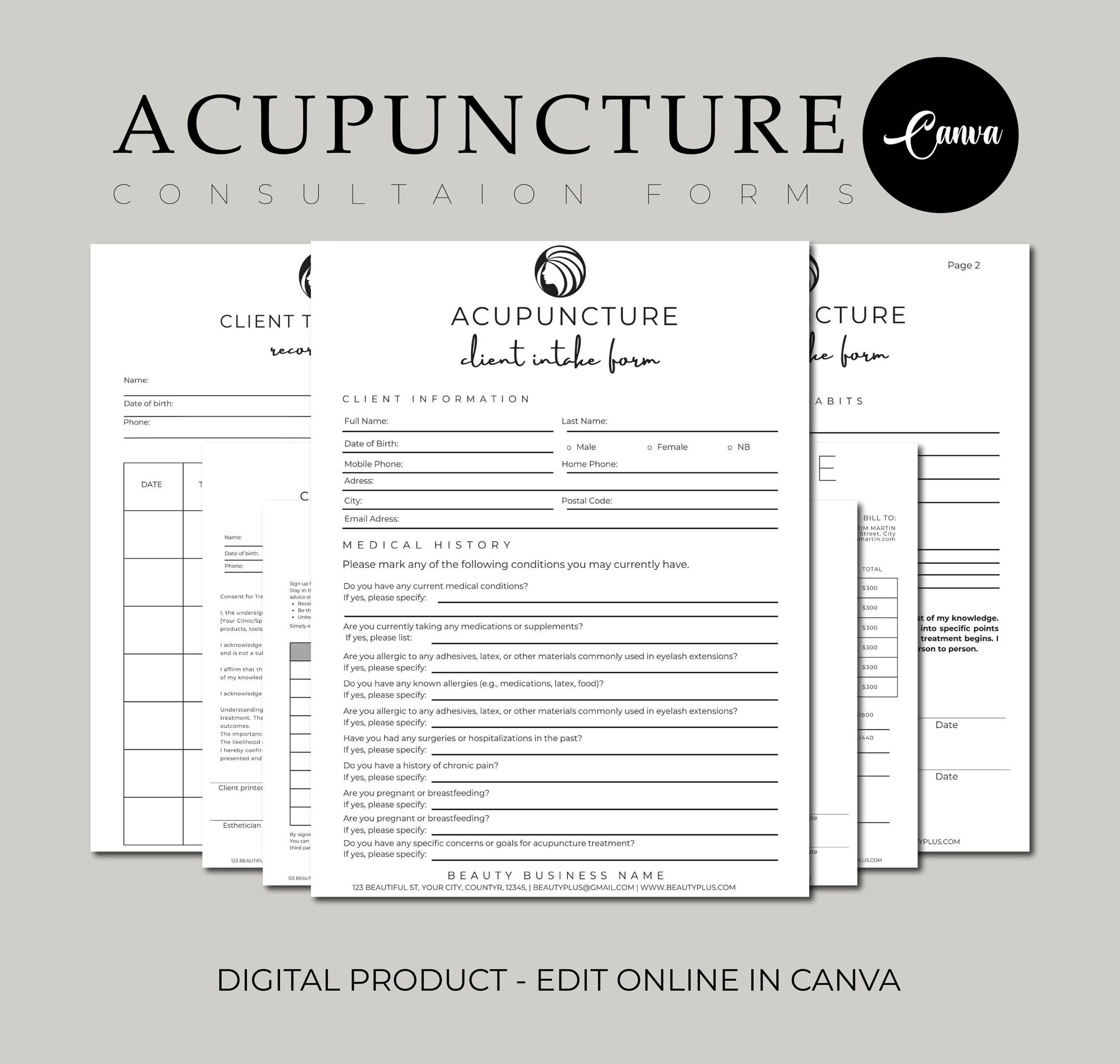 Acupuncture Intake Form Template Bundle Health Consultation And