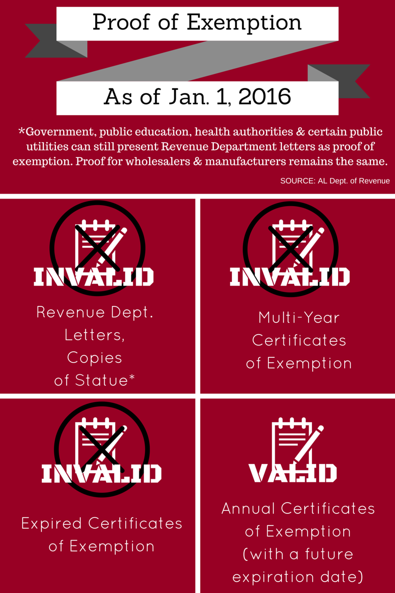 Revenue Department Clarifies Tax Exempt Sales Notice Alabama Retail Association