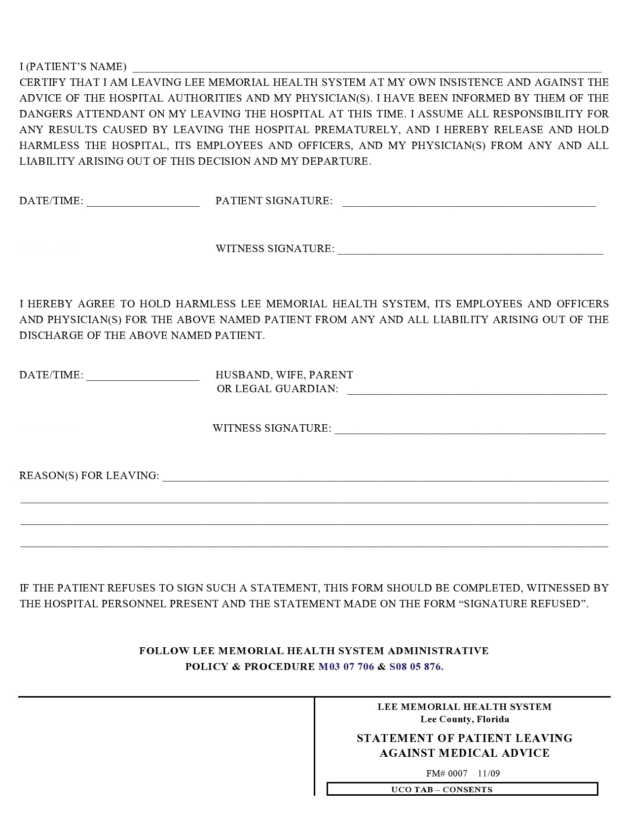 39 Printable Against Medical Advice AMA Forms