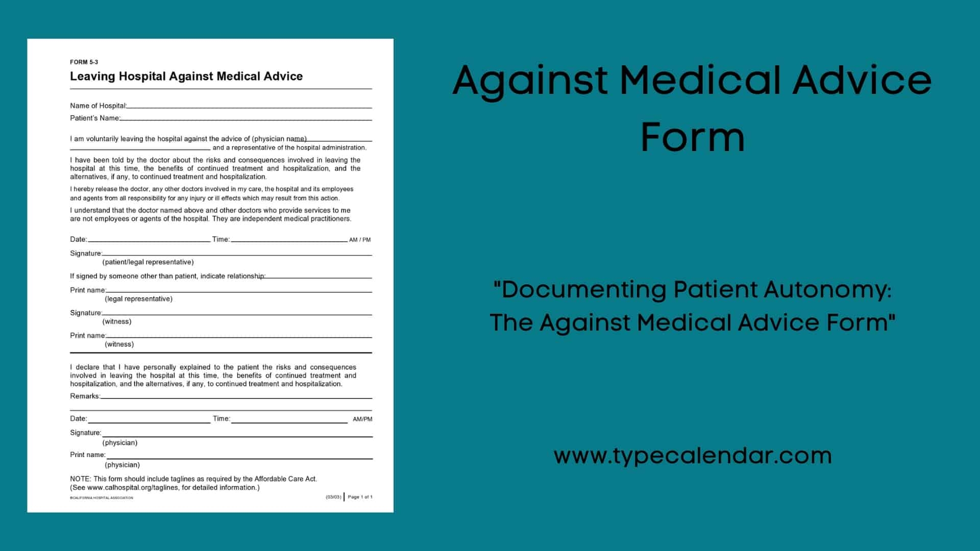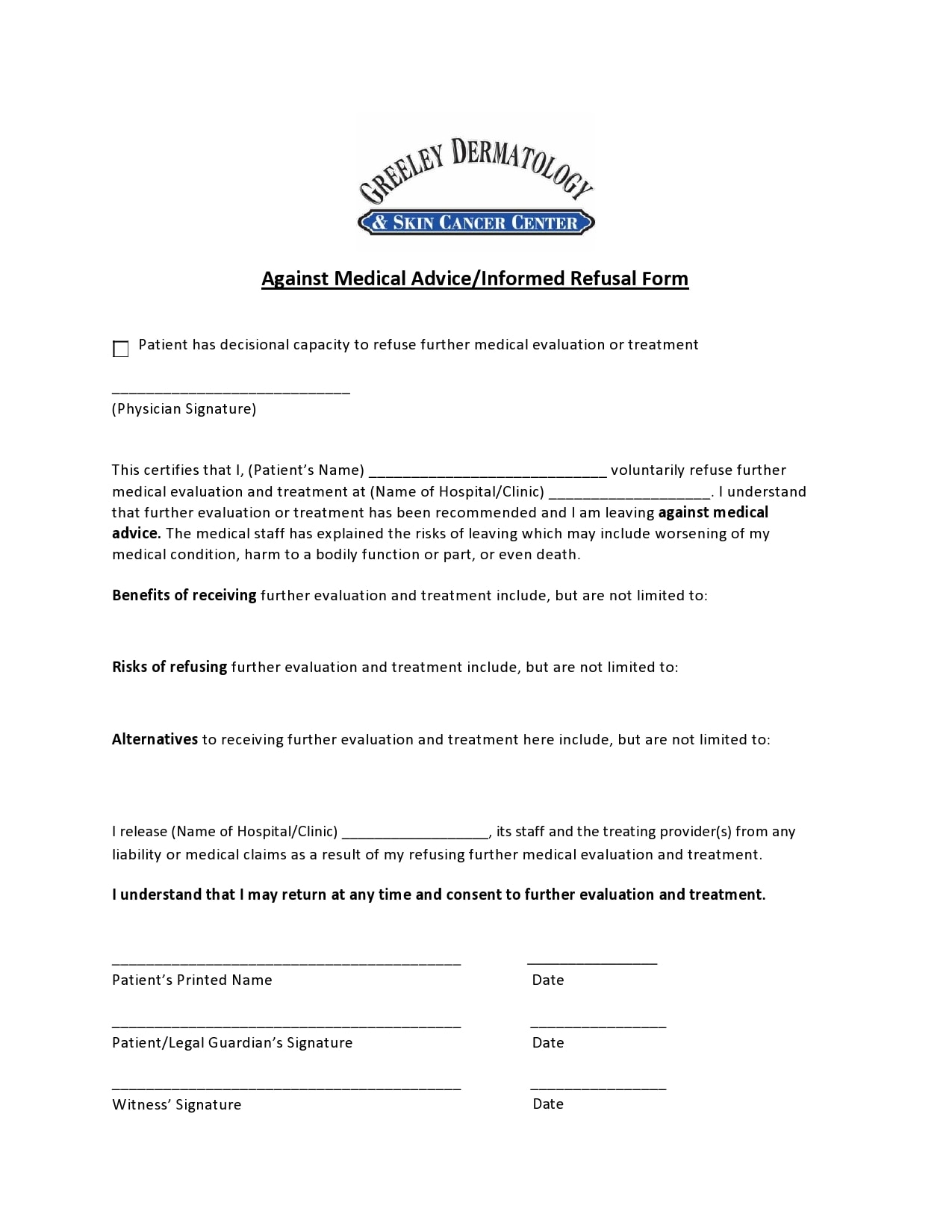 Free Printable Against Medical Advice Form Templates PDF
