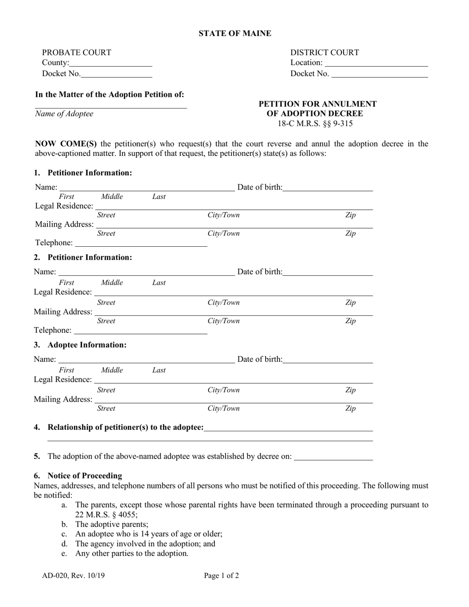 Form AD 020 Fill Out Sign Online And Download Fillable PDF Maine Templateroller