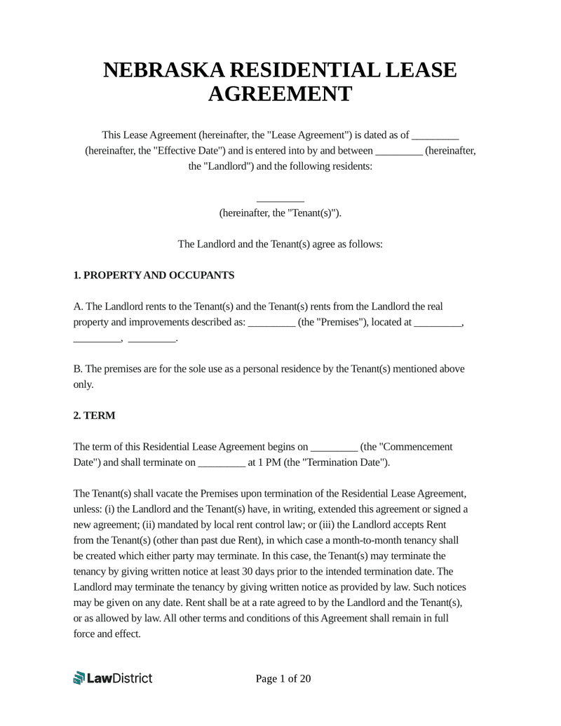 Free Simple 1 Page Lease Agreement Template PDF Word
