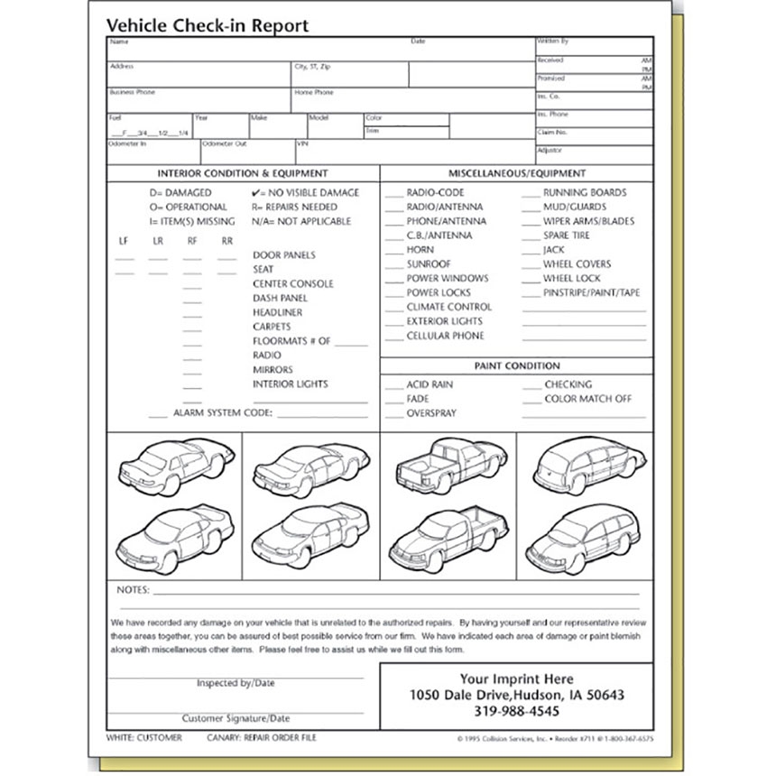 Vehicle Inspection Worksheet Car Dealer Service Body Shop Form 1 Pad Of 100 Amazon au Stationery U0026 Office Products