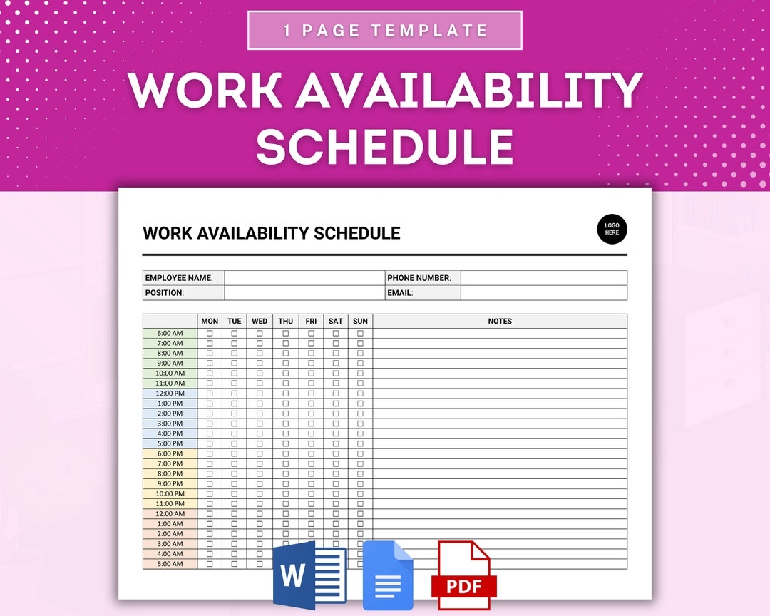 Employee Availability Form Free PDF Word U0026 Canva Templates