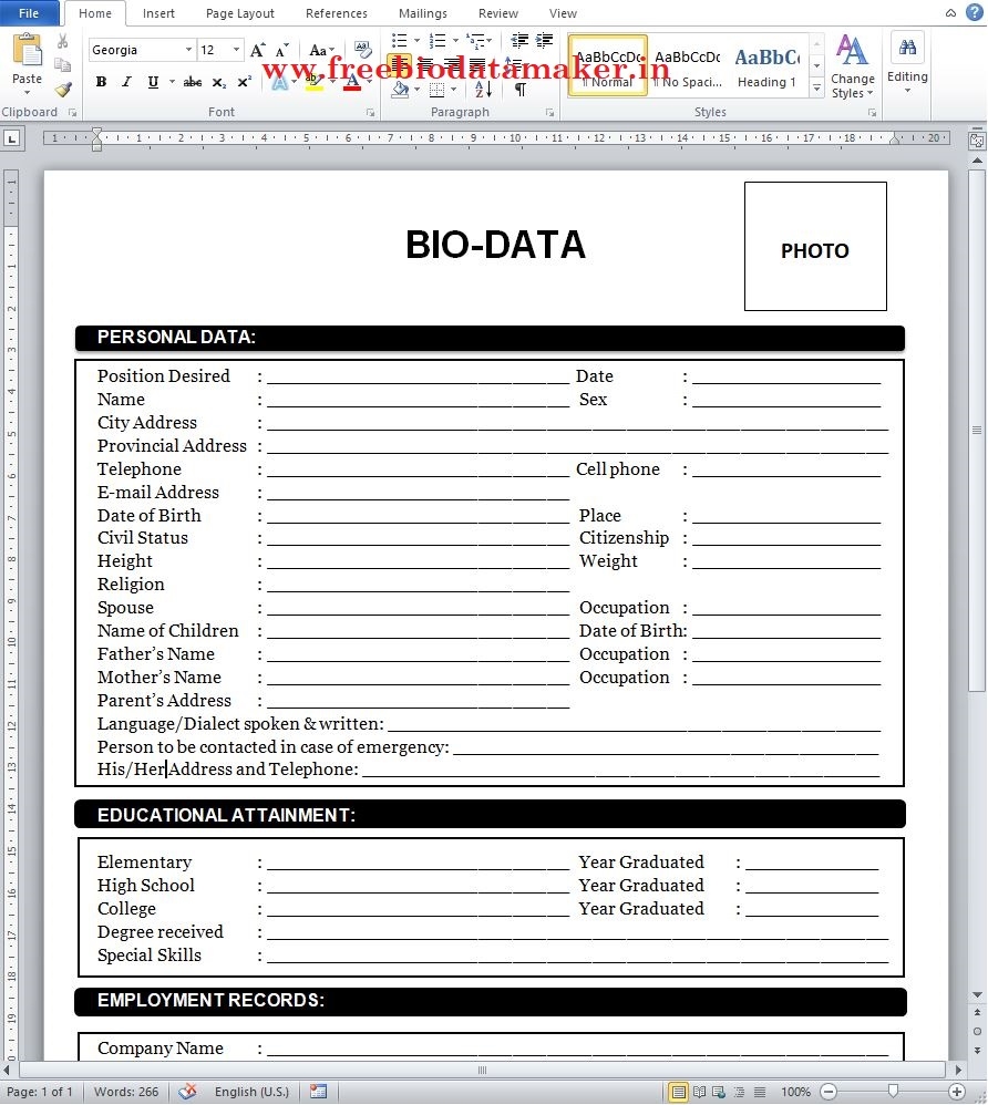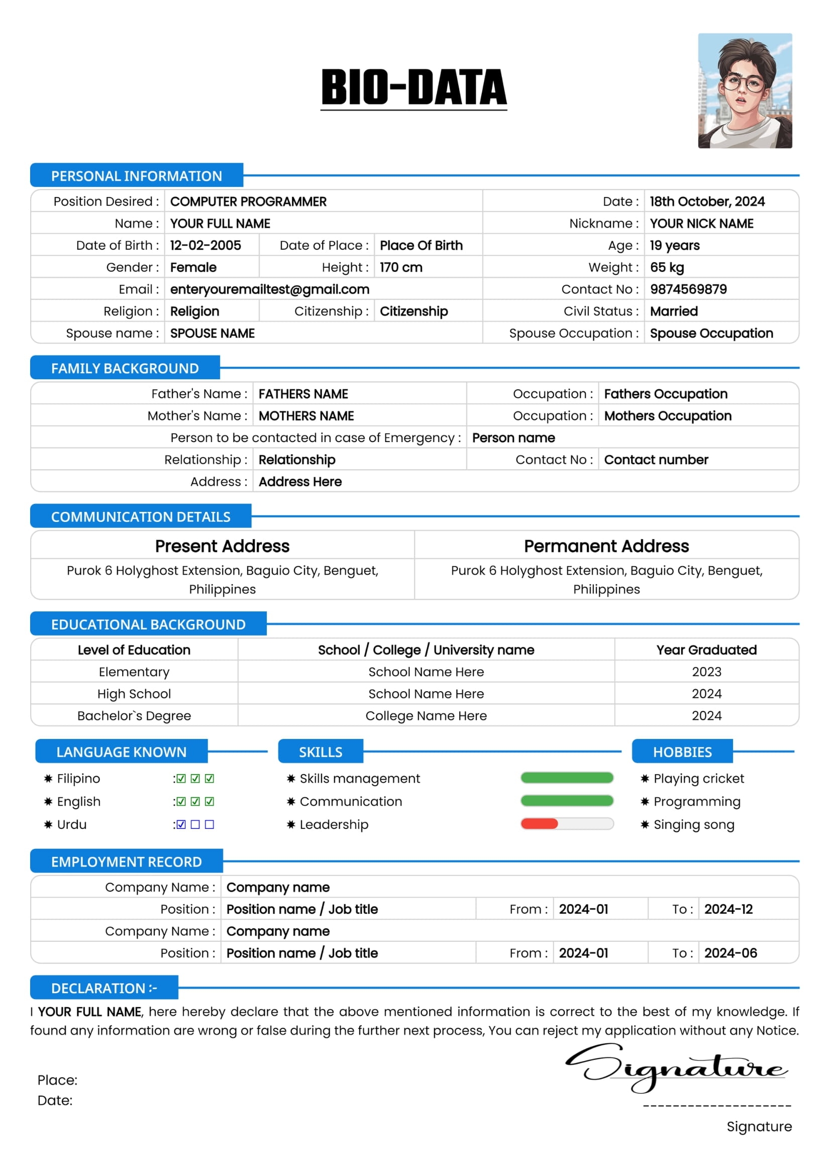 Printable Biodata Form Philippines PDF Free Download FilipiKnow