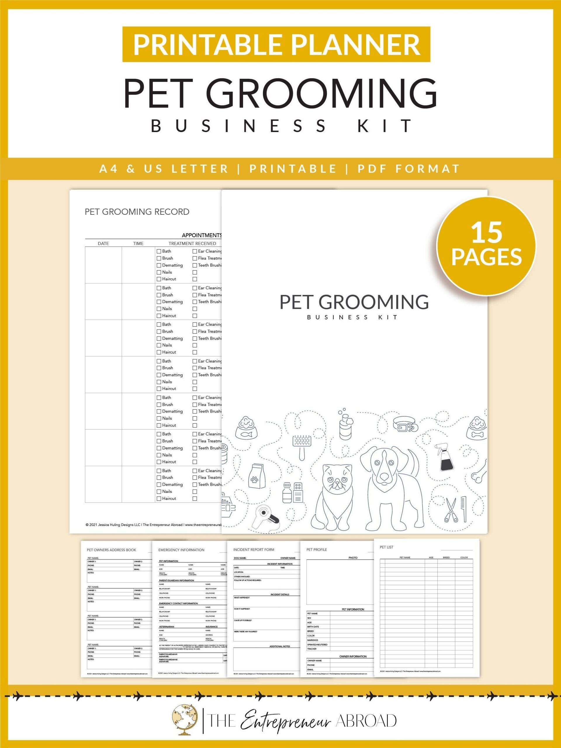 Pet Grooming Business Kit Printable Pet Groomer Pet Report Card Pet Lover Business Pet Services A4 Letter Instant Download Etsy
