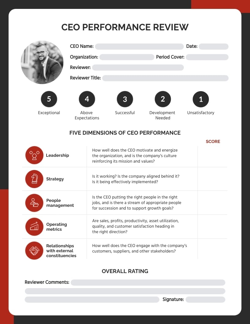 Running a successful business requires evaluating the performance of your CEO regularly. One way to do this is by using a free printable CEO evaluation form. These forms are designed to help you assess the effectiveness of your chief executive officer in leading your company.