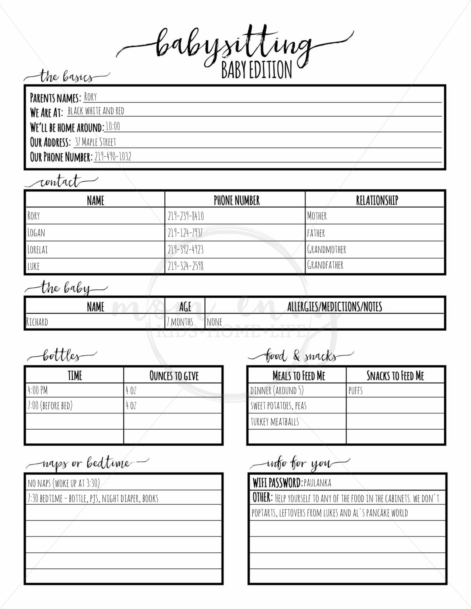 Babysitter Forms Daycare Forms U0026 Other Parent Forms
