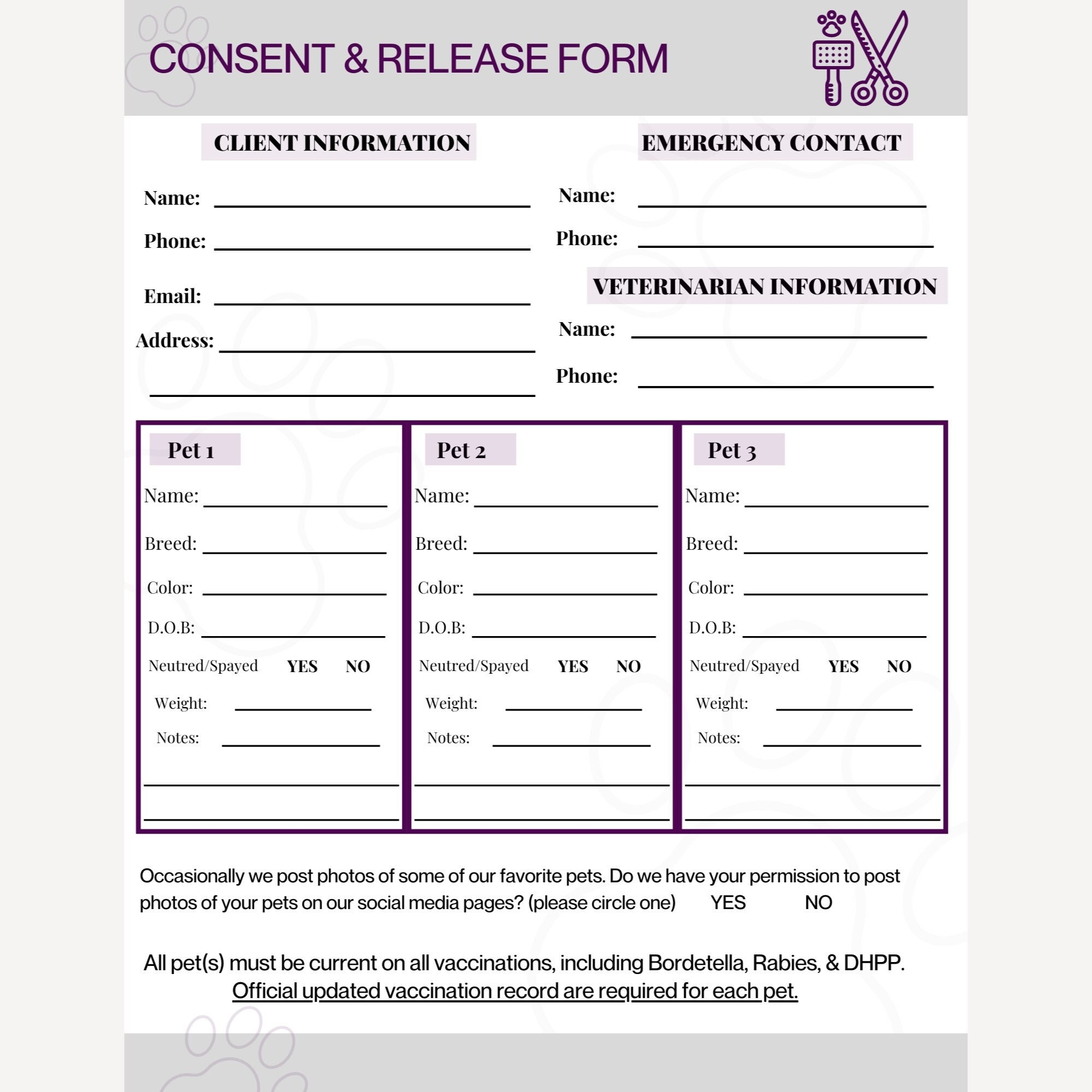 Pet Grooming Consent And Release Form Pet Grooming Dog Grooming Grooming Consent Form Excel Editable File InnovaCo