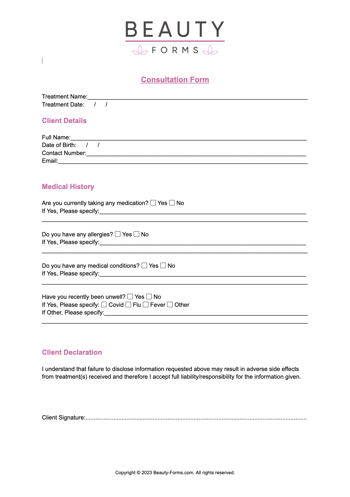 Free Beauty Consultation PDF Printable PDF Download