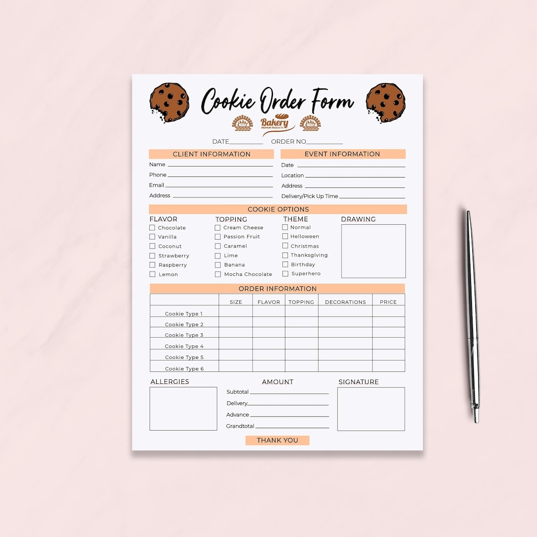Cookie Order Form Template Bakery Order Form Receipt Small Business Invoice Form Editable Cake Order Forms Instant Download DTP 004 Etsy