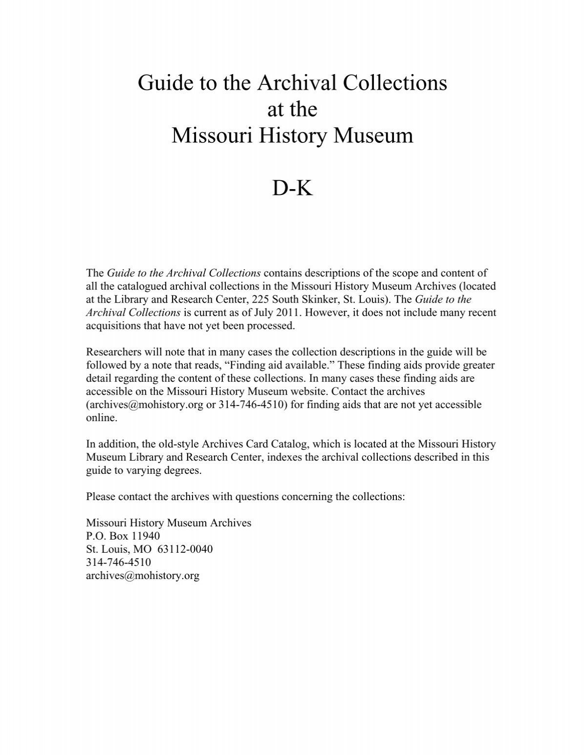 Guide To The Archival Collections D K pdf Missouri History Museum