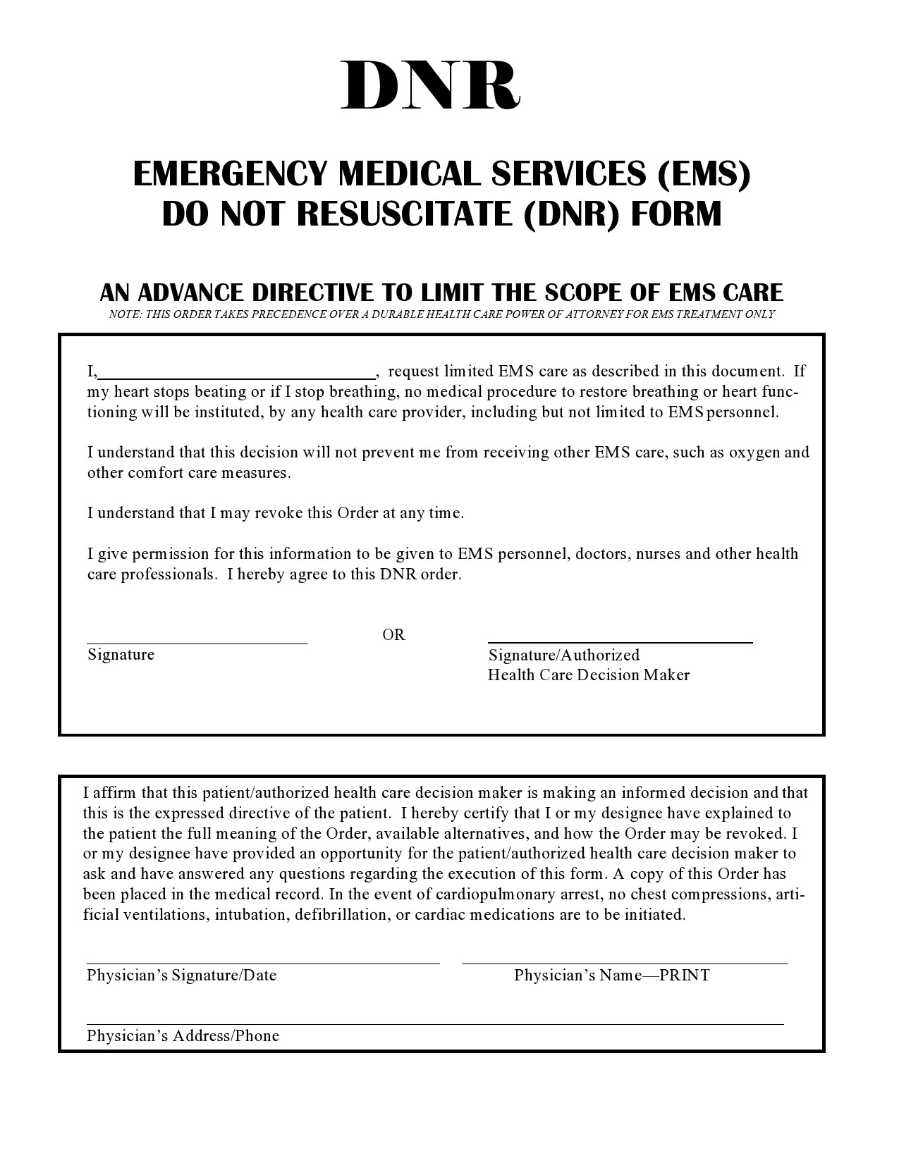 43 Printable Do Not Resuscitate Forms All States TemplateLab