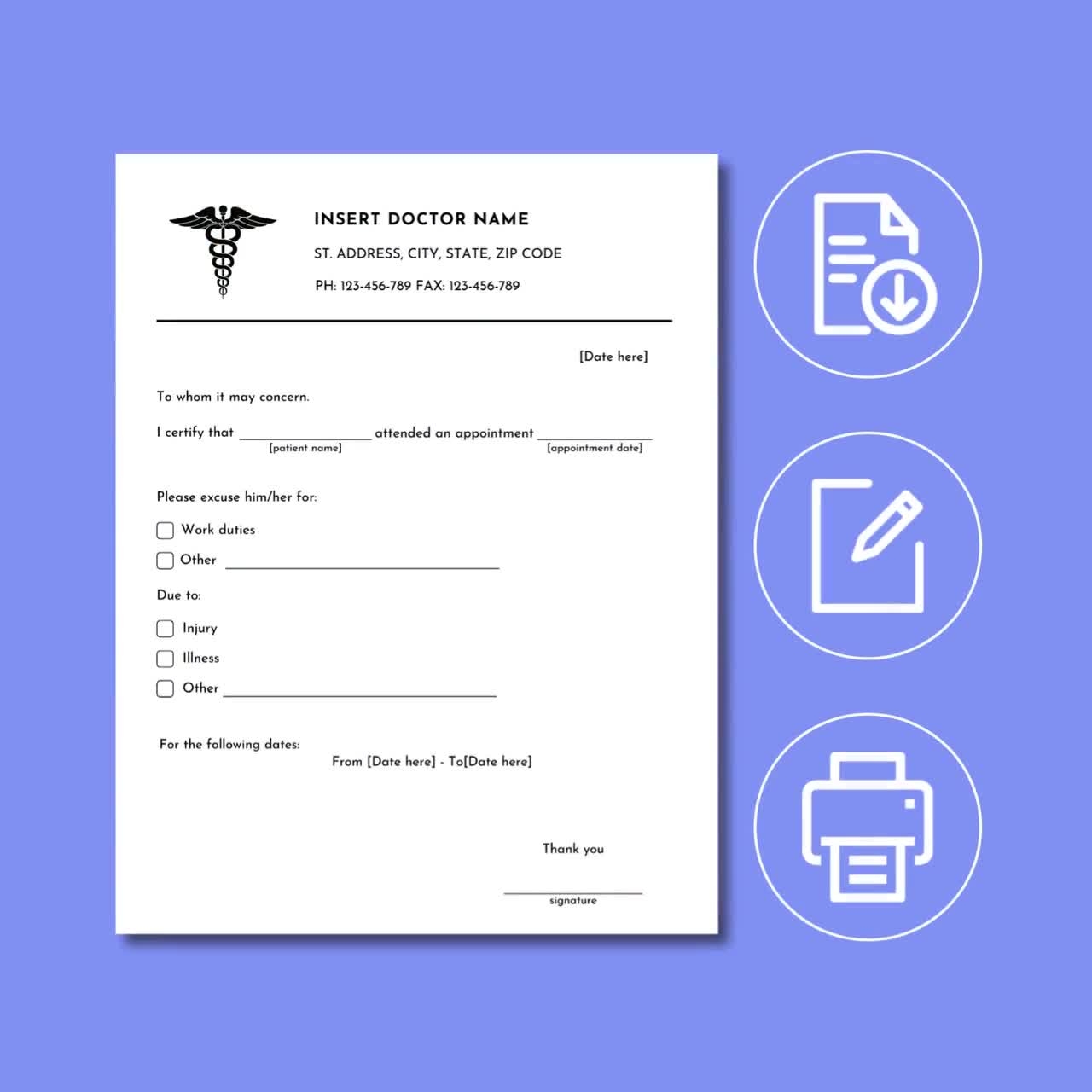 Editable Doctor Excuse Note For Work Printable Doctors Note Template Doctor Excuse Letter Form School Excuse Note Drs Note PDF U0026 Word Etsy New Zealand