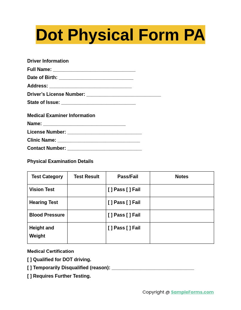 Free 17 Dot Physical Form Samples PDF MS Word Google Docs