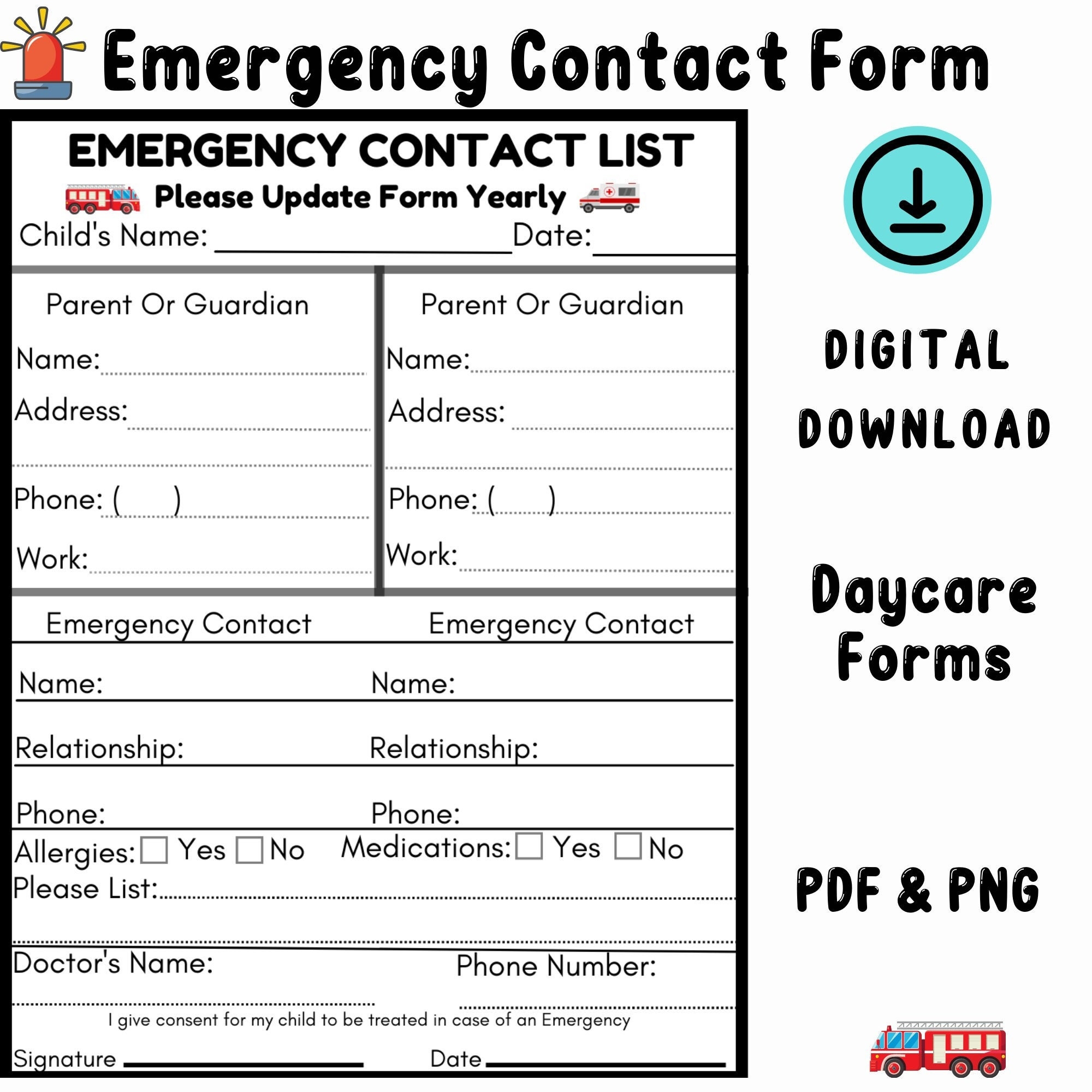 Emergency Contact Form Daycare Forms Preschool Forms Center