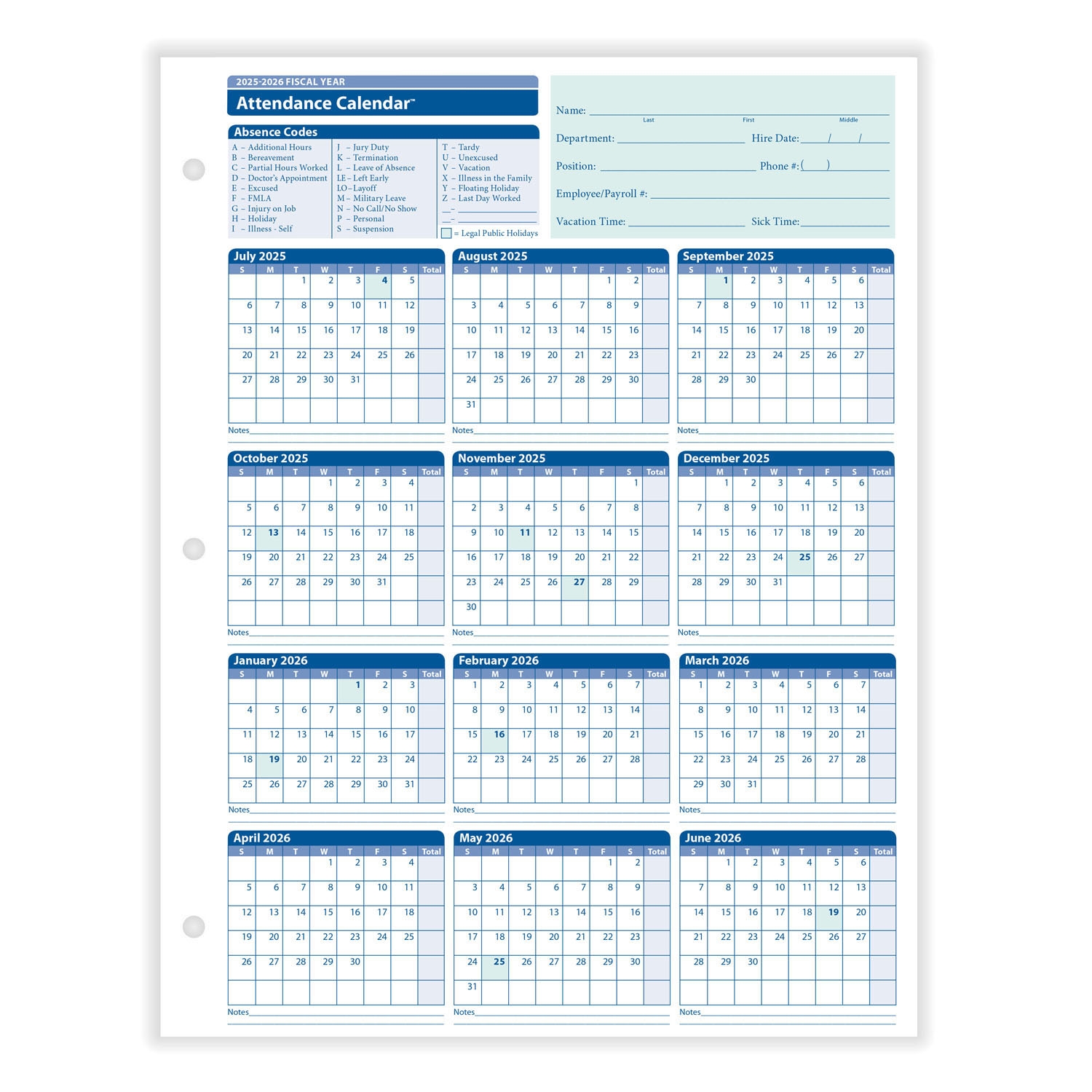 2025 26 Fiscal Year Attendance Calendar Yearly Attendance HRdirect