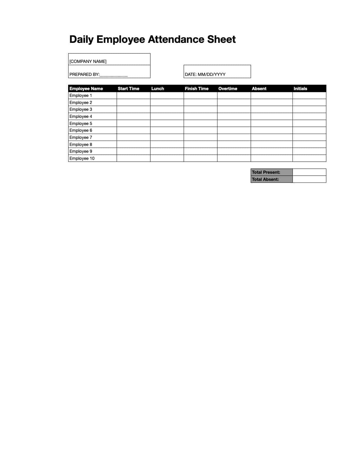 Free Printable Employee Attendance Forms