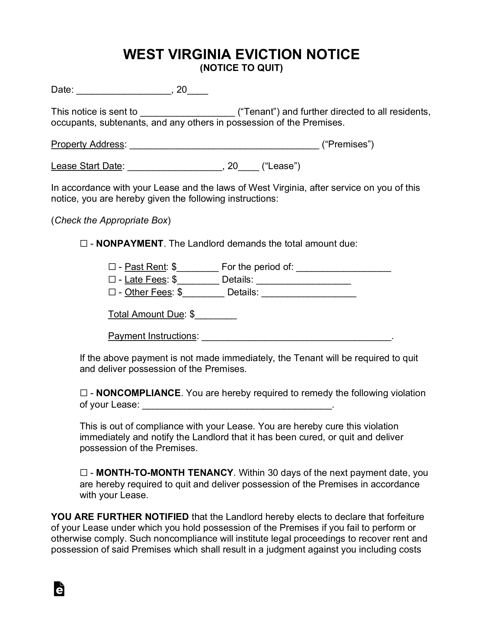 Free West Virginia Eviction Notice Forms 2 PDF Word EForms