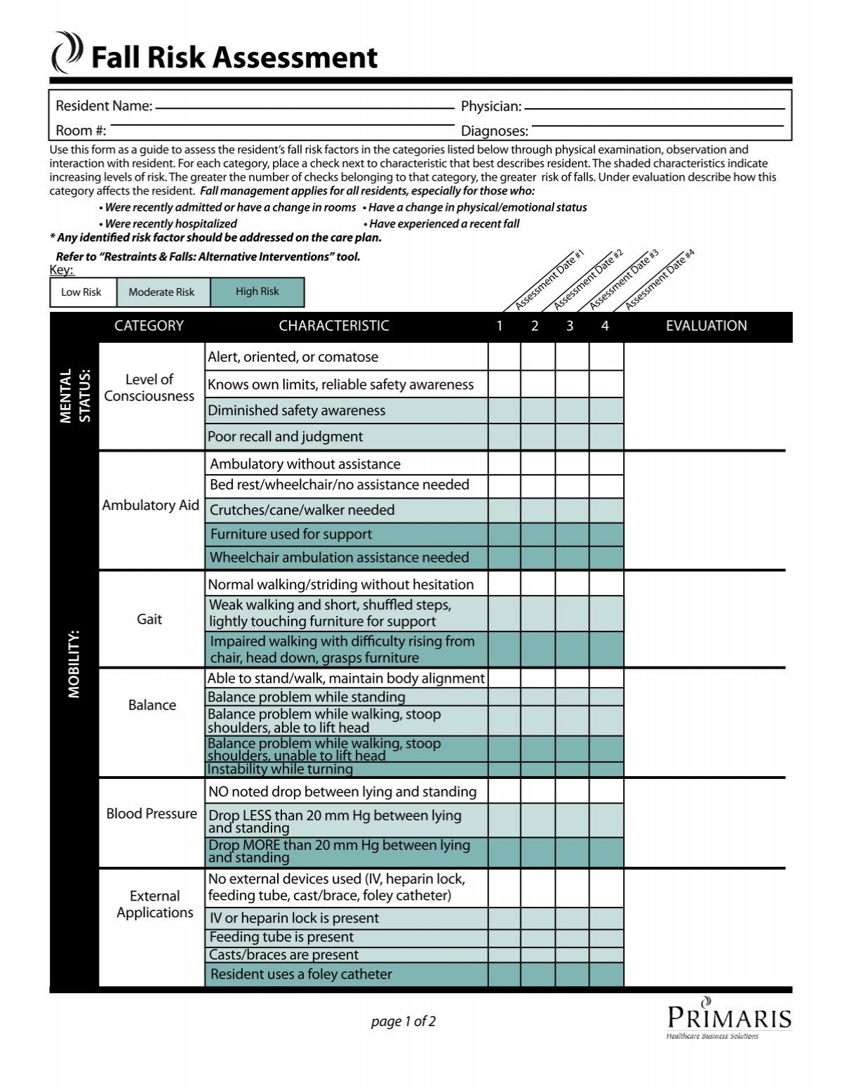 Free Printable Fall Risk Assessment Forms