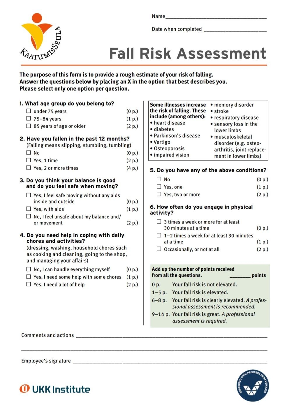 Fall Risk Assessment Version 2 UKK instituutti